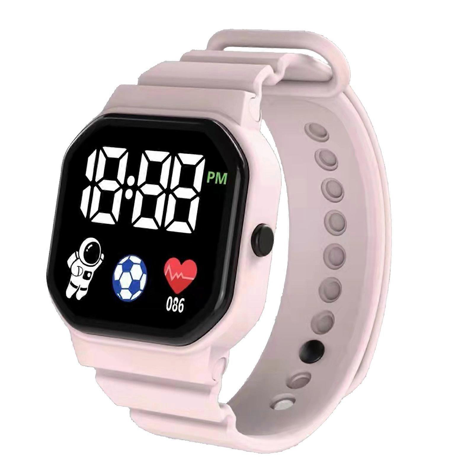 Astronaut Electronic Watch Children Watch LED Display Fashion Watch Square Cute Fashion Electronic Watches Lightweight Pink
