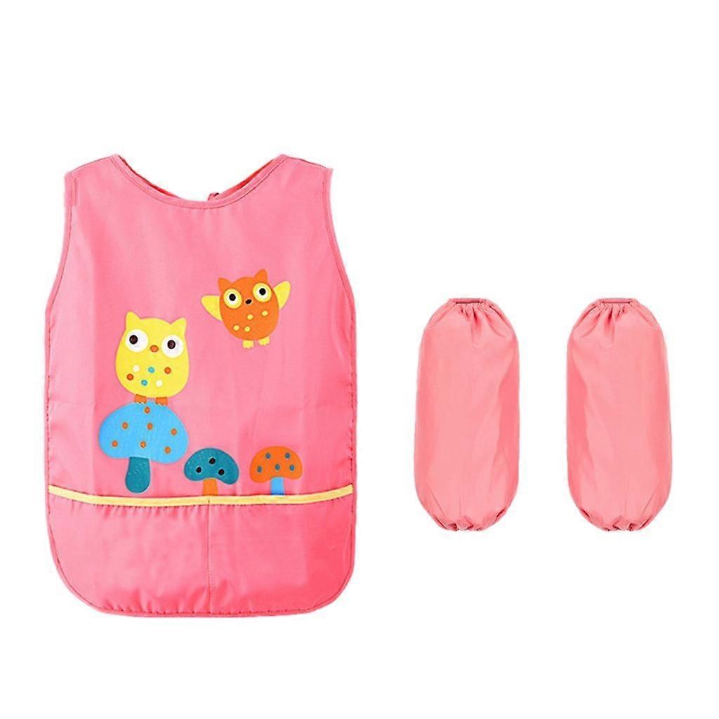 Polyester Child Kids Waterproof Apron Drawing Painting Cooking Smock Rosy