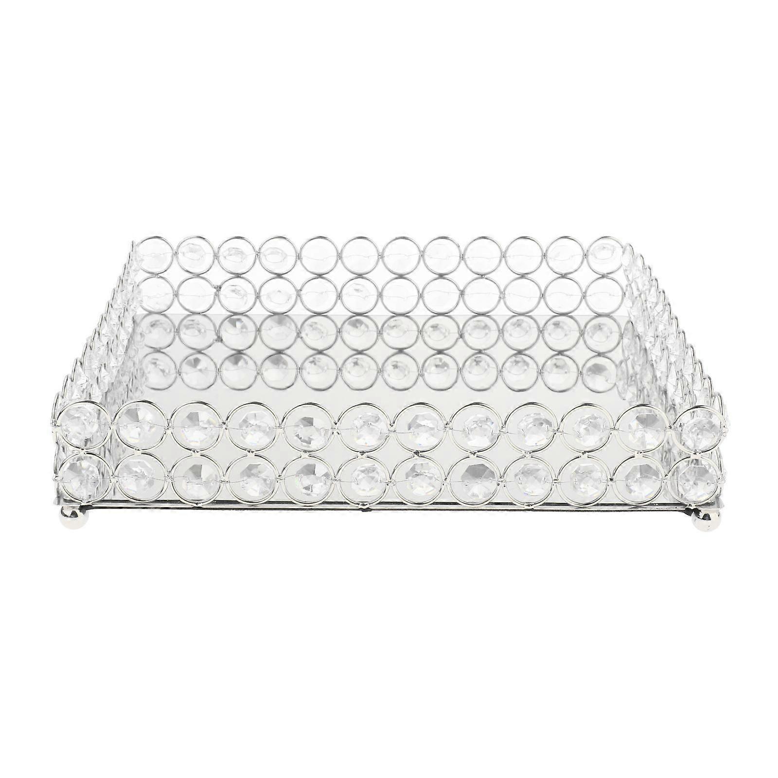 Description: Made of two layer sparkling crystal beads, mirrored surface with stunning base. The crystal tray measures (L*W*H): 27x27x6cm/10.6x10.6x2.4inches Handcraft premium crystal with multiple sections distribute flame’s effects more dazzling. Two Layer beads, Mirrored glass surface tray with stunning base, which is more attractive and gorgeous. Organize jewelry, vanity, cosmetic, makeup brush, perfume, lotions, sprays, flower vase or serving drinks etc. Suitable for decorating dresser, display jewelry, serving in the party, wedding centerpieces etc. Package Includes: 1 Piece Crystal Vanity Tray