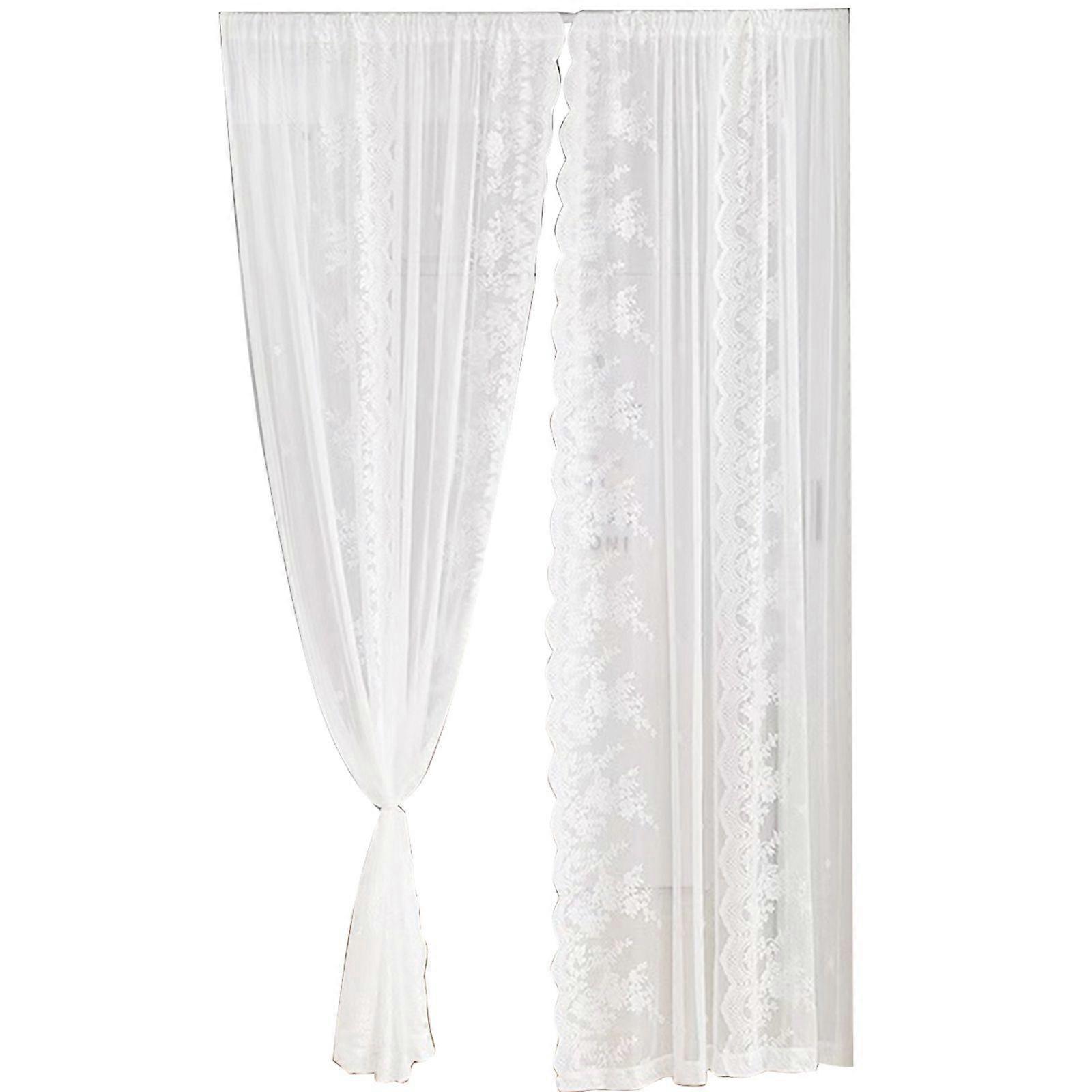 2pcs Lace Vertical Double Row Lace Curtain for Home Living Room Bedroom Office