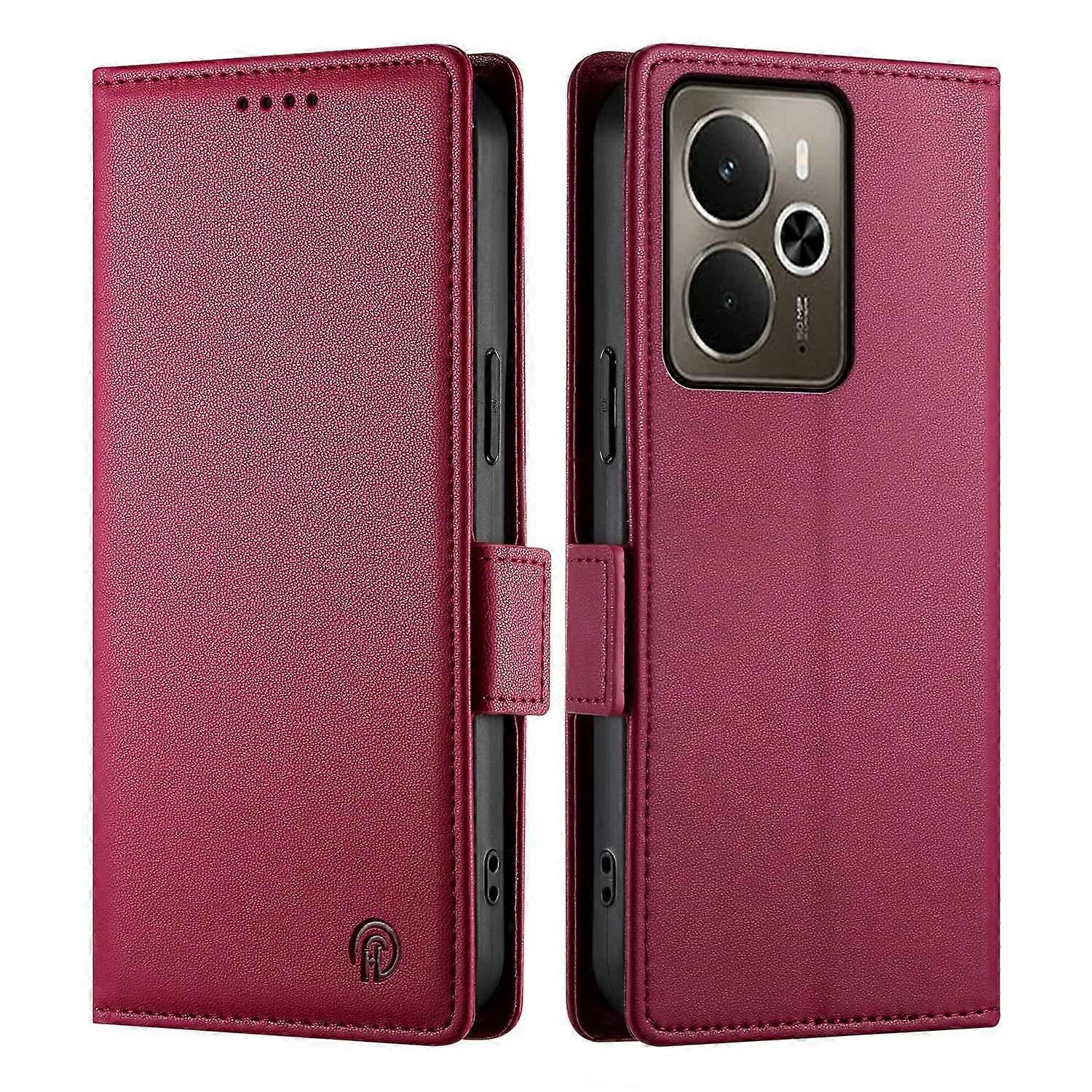 For Realme 14 5G Stand Case PU Leather Wallet Phone Cover - Wine Red