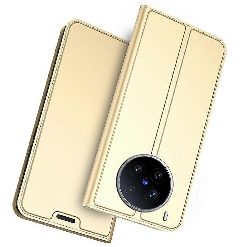 For vivo X200 Ultra 5G Case PU Leather Phone Cover with Card Holder Stand - Gold