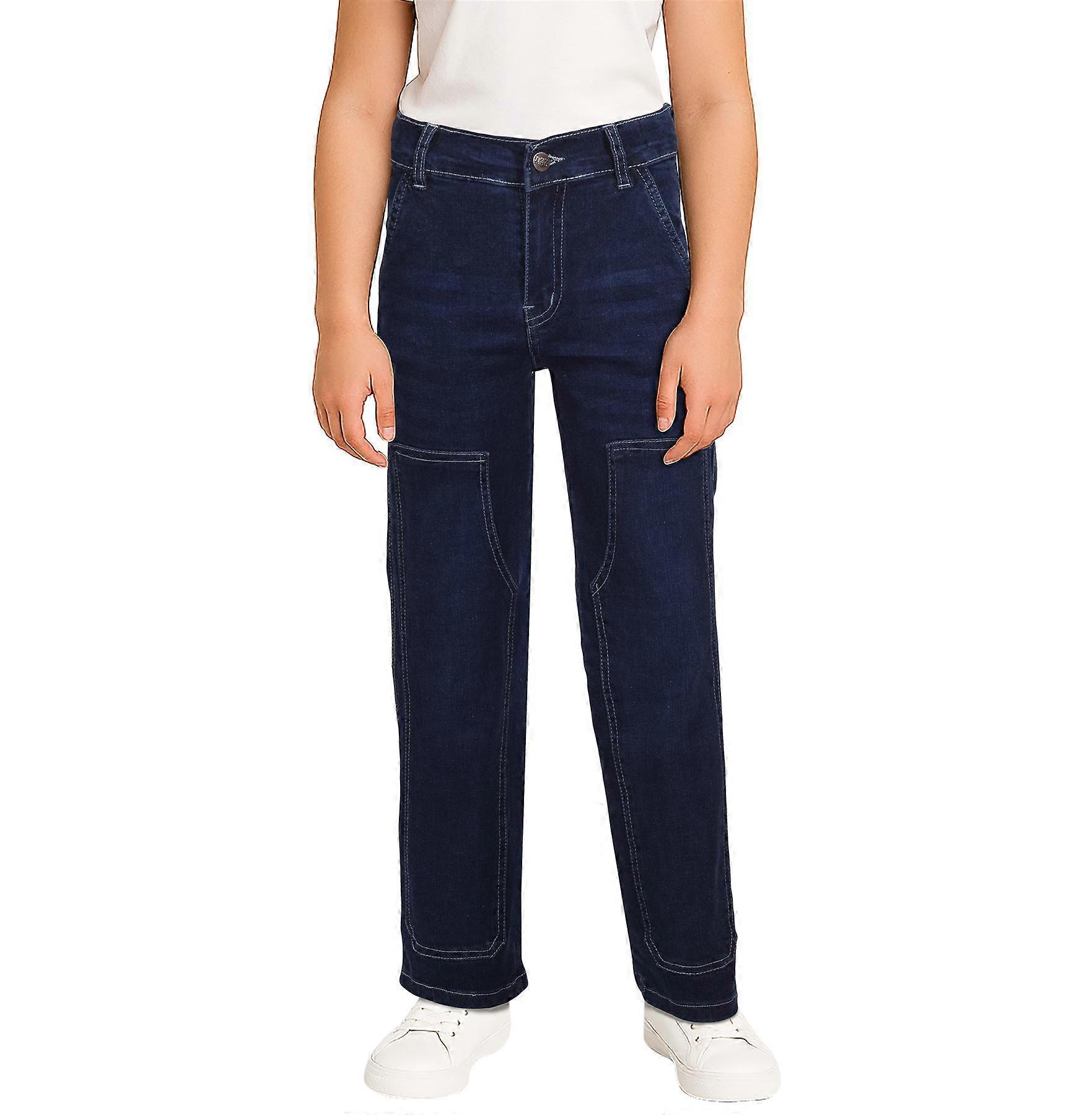 👖Straight Leg Fit for a Polished Everyday Look:These stylish pants feature a tailored straight-leg cut that delivers both structure and comfort for active girls. Whether worn casually or dressed up, they strike the perfect balance between function and fashion. The design offers freedom of movement with a sharp silhouette, making them ideal for school, outings, and family gatherings. 🎨Utility-Inspired Contrast Stitch Design:Inspired by classic workwear, these trousers are enhanced with large patch-style pockets and clean, contrast double-stitch detailing down the legs. The bold seam lines add a trendy, structured element, giving these trousers an elevated yet youthful edge. Carefully crafted to offer a modern take on durable, utilitarian style.🧵Crafted with Precision Using Premium Denim Blend:Expertly made with a soft-touch yet resilient denim blend, these trousers are designed for durability and comfort. Meticulously stitched for long-lasting wear, the fabric resists everyday wear and tear. The smooth surface finish mimics a PU-look polish, offering a sleek aesthetic with the ease of denim-like care and feel.🔐Functional & Comfortable for Daily Adventures:Featuring classic belt loops, a secure button-fastened waistband, and spacious pockets both front and back, these jeans provide functional fashion for young wearers. The tailored fit ensures ease of movement, while the breathable material keeps kids comfortable all day perfect for play, travel, or dressing up.📏Available Sizes Perfect Fit for Every Age Group:These stylish jeans are available in multiple sizes to ensure the best fit for your growing child. Designed for durability and a versatile look across age ranges. Available Sizes: 5-6, 7-8, 9-10, 11-12, and 13-14 years.