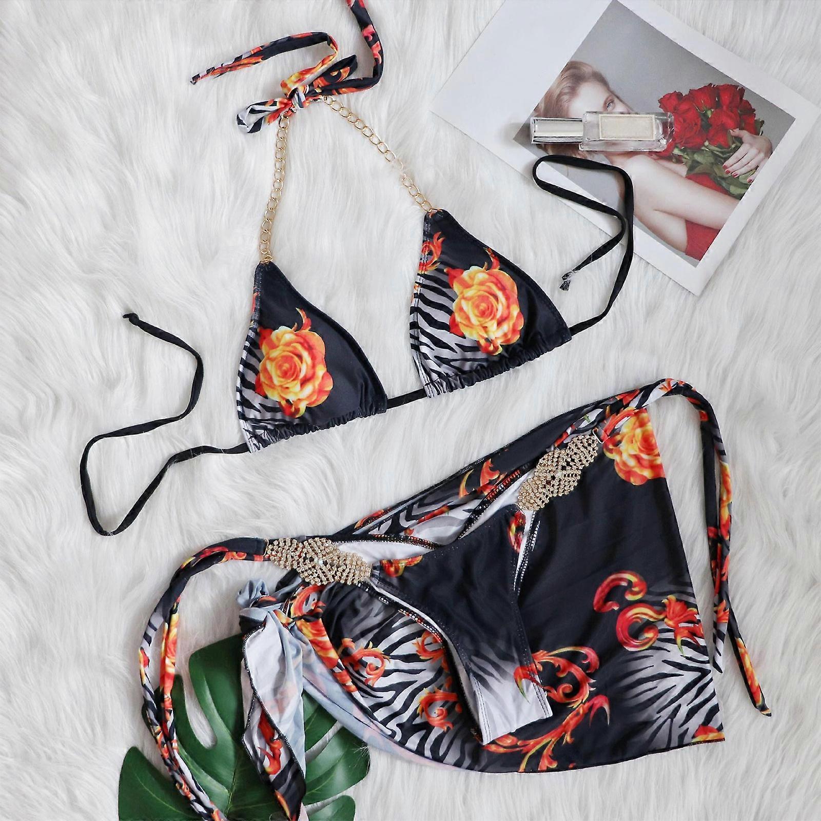 3Pcs/lot Sexy Women Summer Swimwear Bikini Set Bra Bandage Rhinestones Thong Beach for Triangle Swimsuit Bathing Suit M