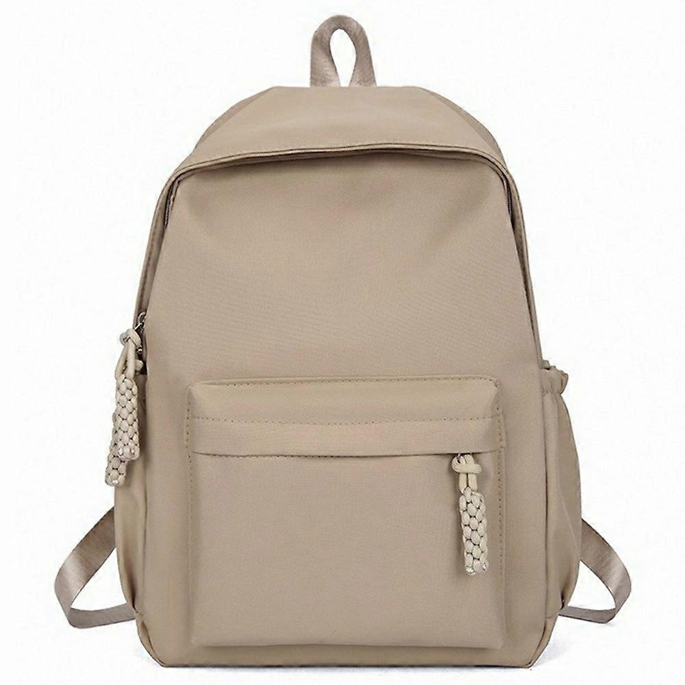 Fashion Large Capacity Backpack Solid Color Nylon Men Women School Travel Daypack - Khaki