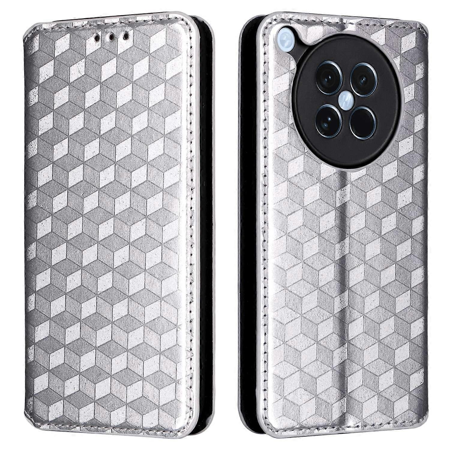 For Oppo Find X8s 5G Case Wallet Rhombus Imprinted Leather Phone Cover - Silver