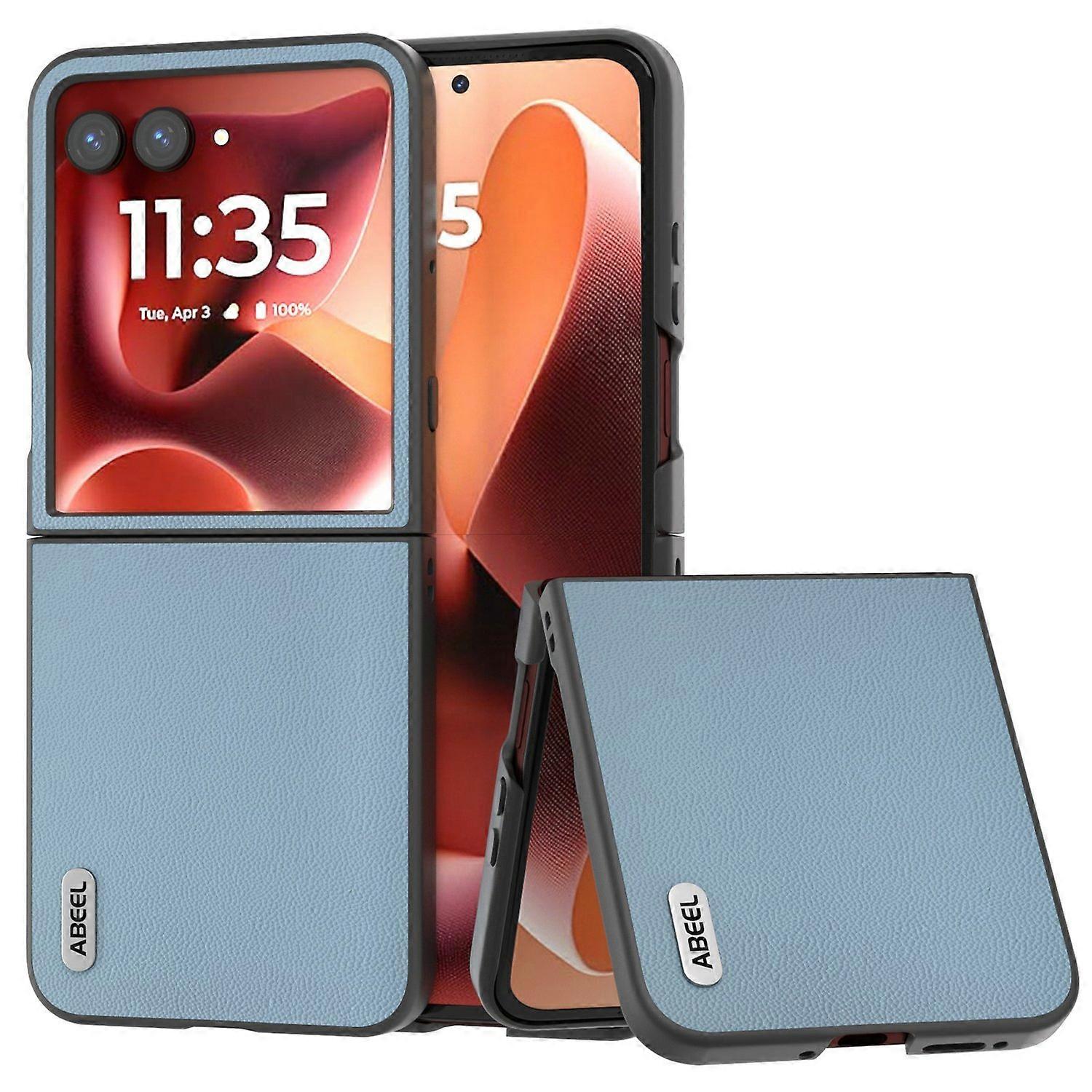 ABEEL For Motorola Razr 60 Ultra 5G Case Black Edge Genuine Cow Leather PC Phone Cover - Baby Blue