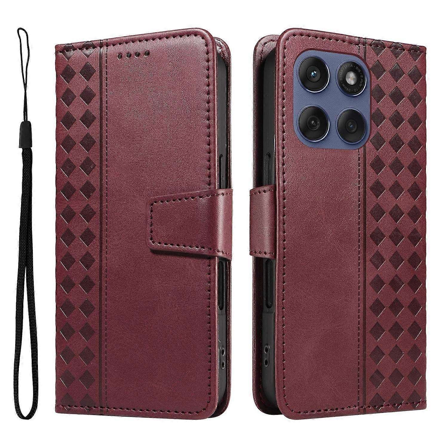 For Motorola Edge 60 Fusion 5G Leather Case Wallet Stand Grids Imprinted Phone Cover with Strap - Wi