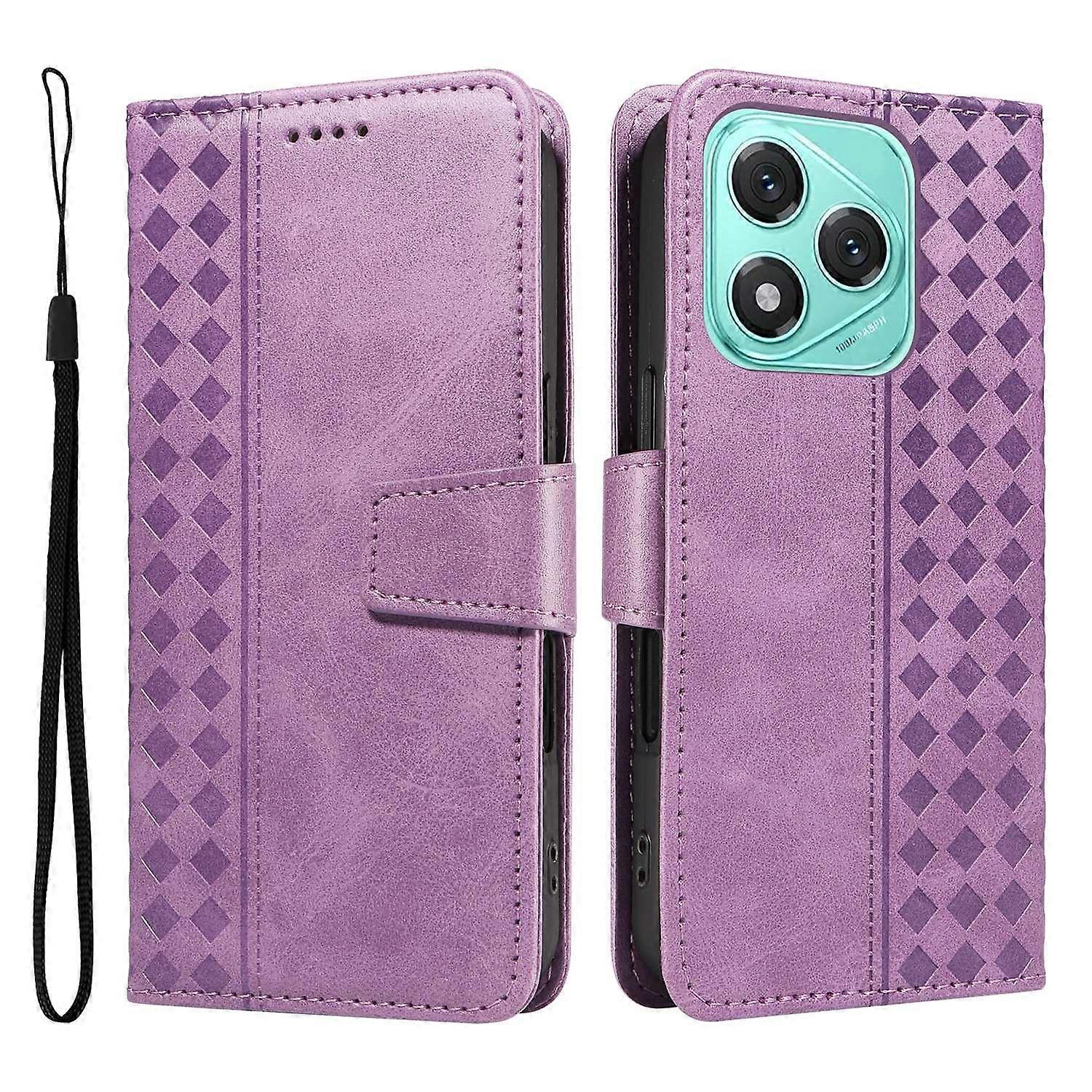 For Honor 400 Lite Leather Case Wallet Stand Grids Imprinted Phone Cover with Strap - Light Purple