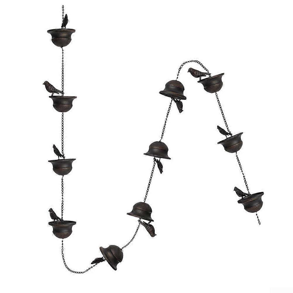 - High-Quality Materials: Crafted from durable materials through a rigorous manufacturing process, this rain chain promises exceptional strength, longevity, and reliable performance. - Aesthetic Appeal: Enhance your outdoor space by beautifully hanging this rain chain adorned with 12 metal birds. As rain cascades down, it creates a captivating visual and auditory experience, adding charm to rainy days. - Simple Installation: Designed for convenience, the rain chain comes with pre-installed hooks for easy hanging. It can be effortlessly placed in various outdoor settings, including canopies, balconies, doors, patios, porches, and near plants. - Thoughtful Gift: Ideal for those who appreciate the beauty of rain or have a fondness for birds, this rain chain makes a meaningful gift for friends and family. Its unique design offers both visual beauty and soothing sounds, enriching any outdoor environment. Use Scenarios: 1. Transform your garden or backyard into a serene retreat by installing the rain chain near your favorite plants, allowing rainwater to flow gracefully. 2. Hang it from your porch or patio to create an inviting atmosphere for gatherings during rainy weather, where guests can enjoy the gentle sounds of falling water. 3. Use it as a decorative element in a gazebo or outdoor structure to enhance visual interest while effectively guiding rainwater away from your home.