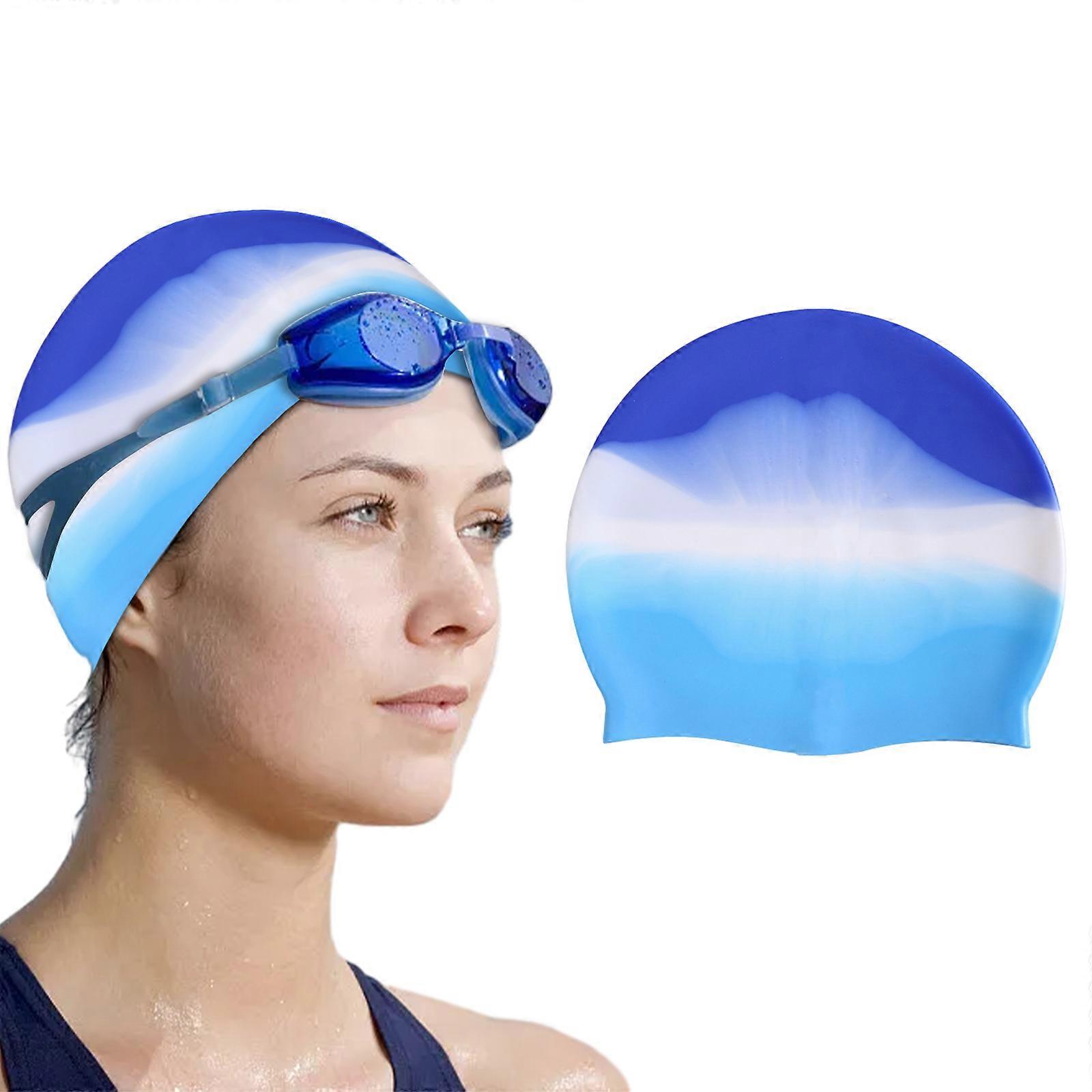 Colorful silicone swimming cap - lake blue and white