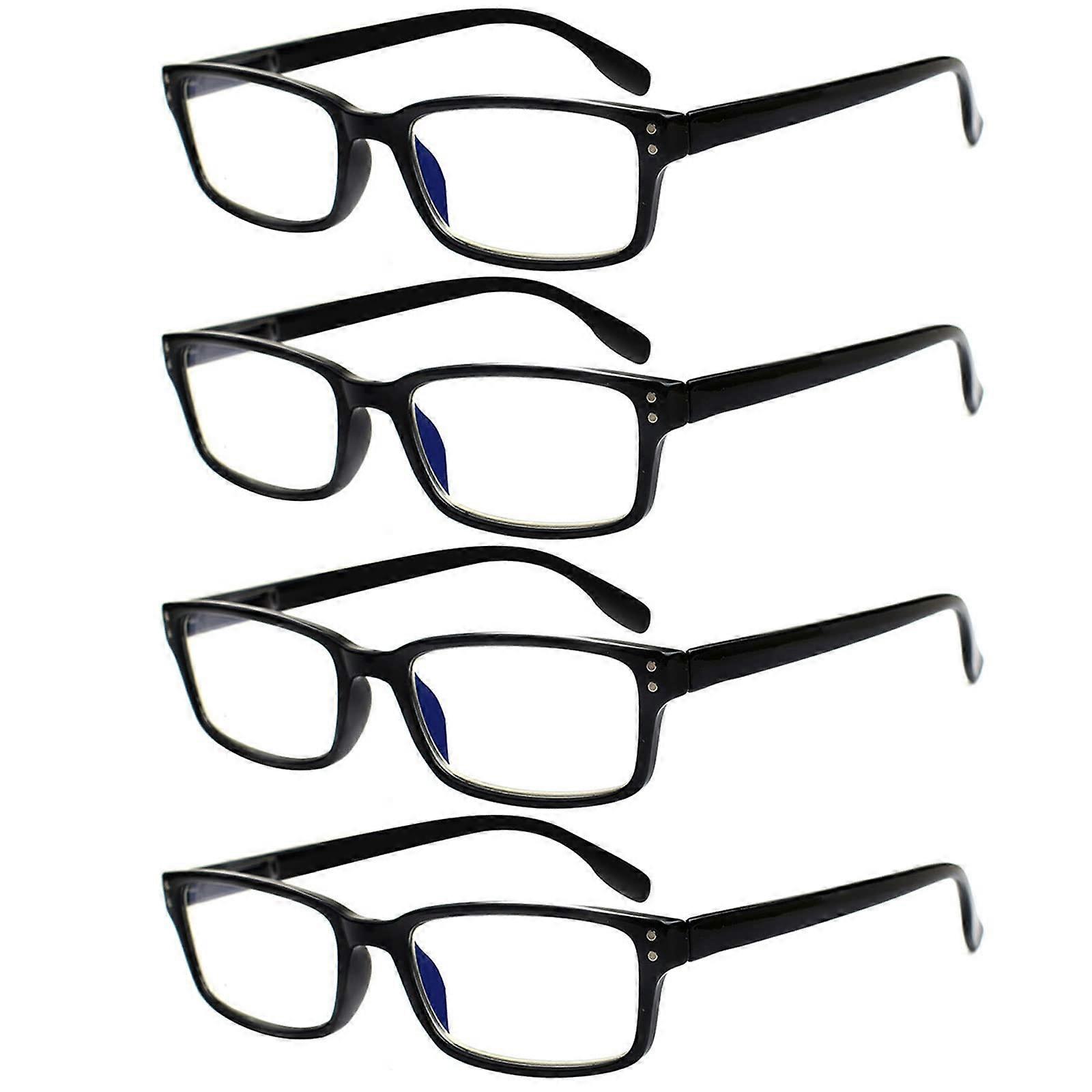Reading Glasses 4 Pack, Spring Hinges, Unisex Eyeglasses, Black, 2.50 Diopter