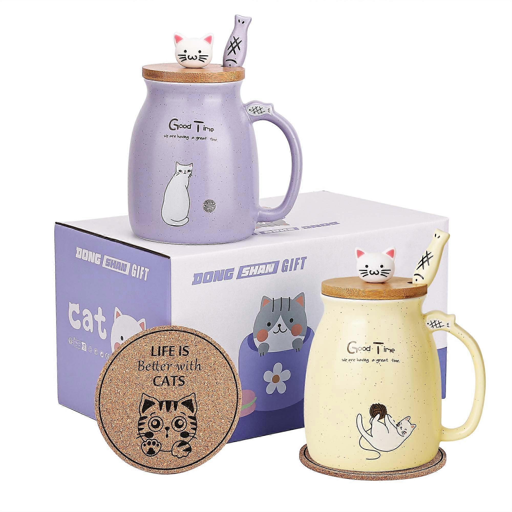 Kawaii Cat Mug Two Pack Set 15oz/450ml, Christmas Gift, Cat Lover Gift