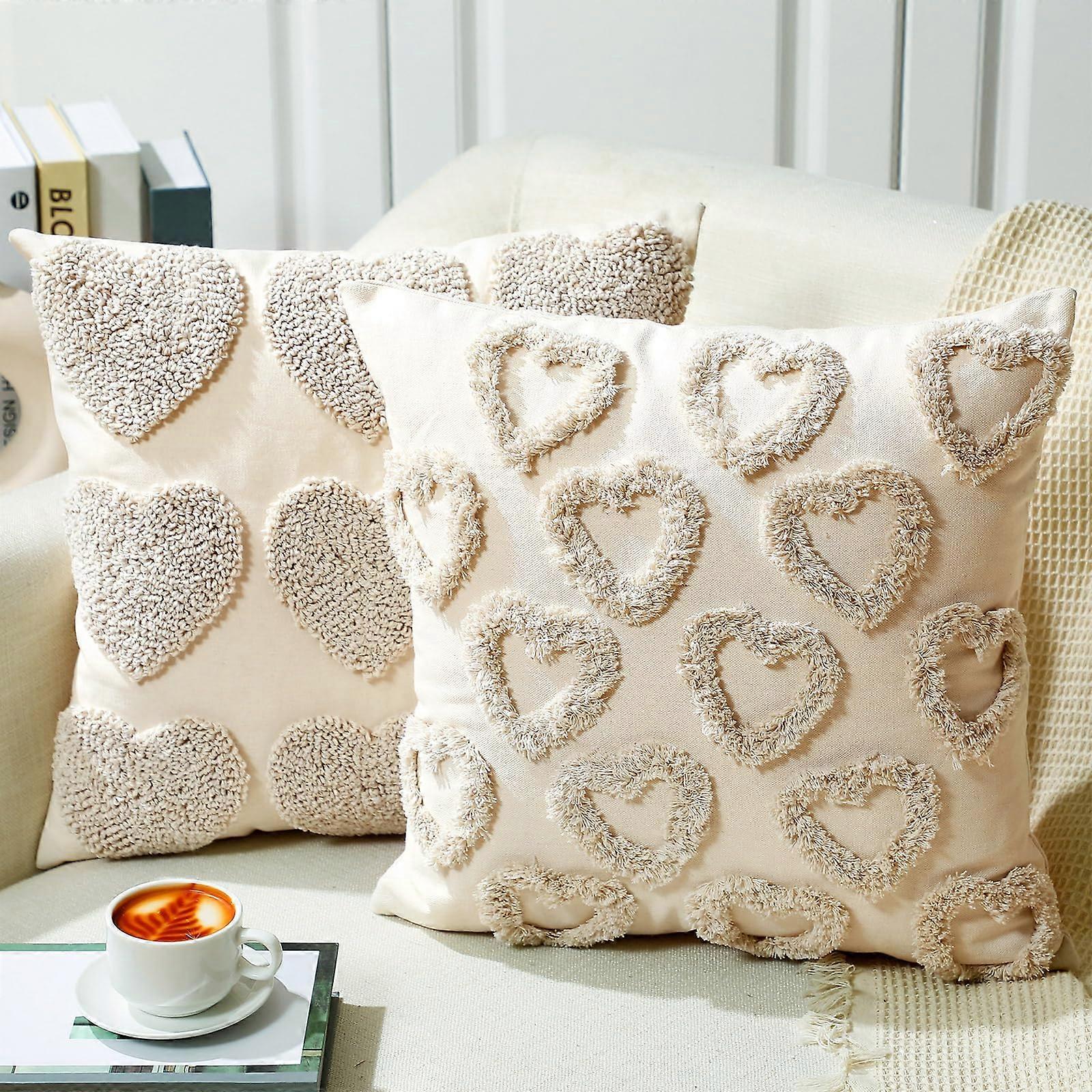 2 PCS Valentine's Day Pillow Covers With Hearts Decorative Emphasis, 18 x 18 Inch, Set Of 2 Throw Pillow Covers