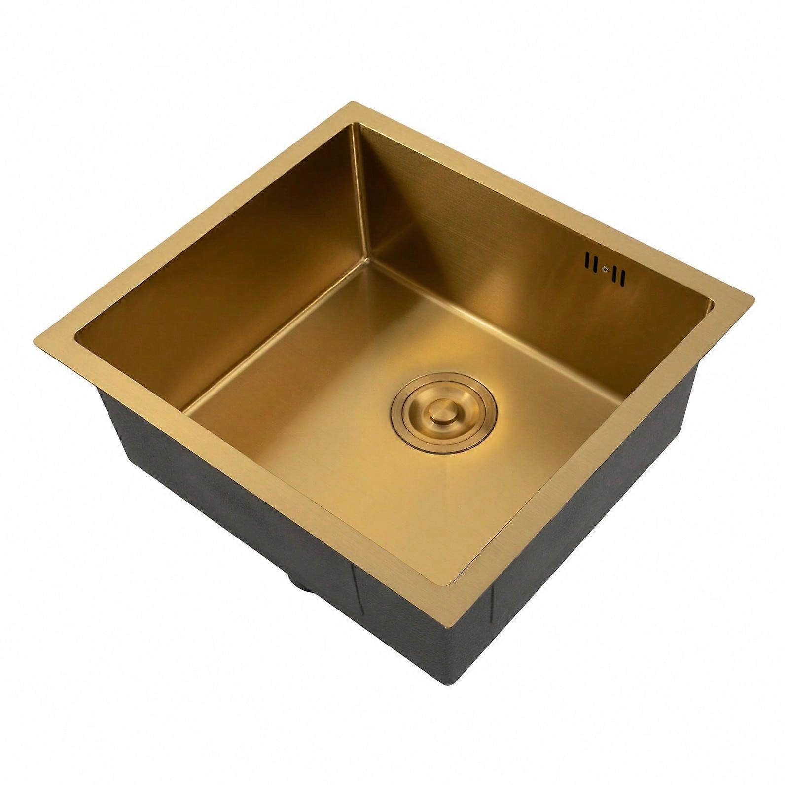 Stainless Steel Sink, 50 X 43 Cm, Washbasin with Drain Filter, Brushed Gold, Flexible Mounting, Stainless