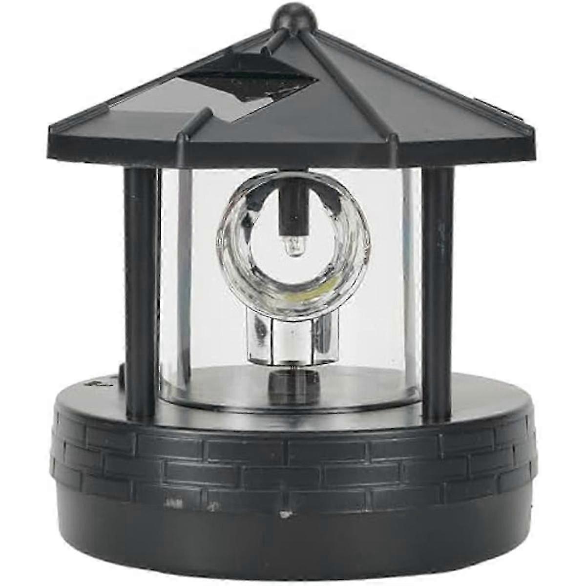 LED Solar Powered Lighthouse,360 Degree Rotating Lamp LED Solar Lighthouse Landscape Path Lights Gar-cheng du,Black,