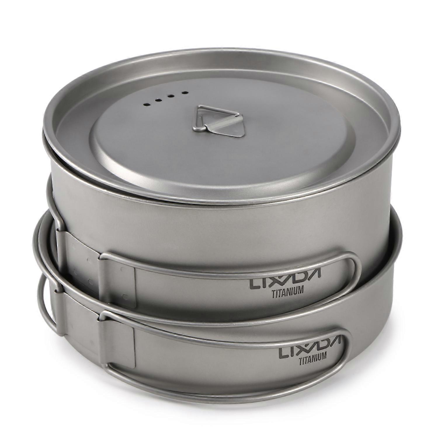 Lightweight Durable Titanium Cookware Set 2-Piece Non-Stick Stackable Outdoor Camping Pot Set Easy to Carry for Hiking Campin