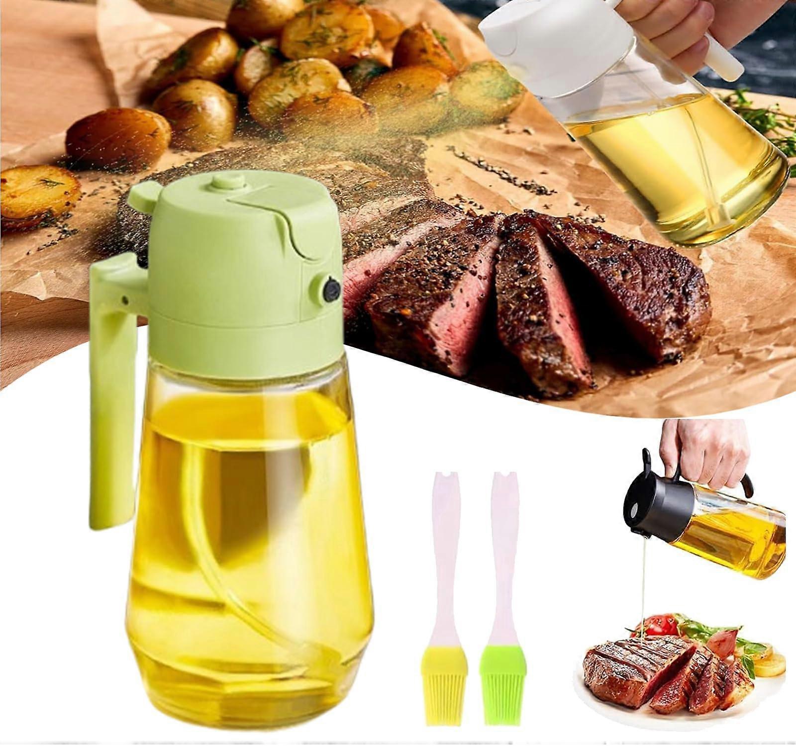 Oil Distributor and Oil Sprayer Set, 2-in-1 Kitchen Oil Spray Bottle, Green Plastic Cooking Oil Dispenser