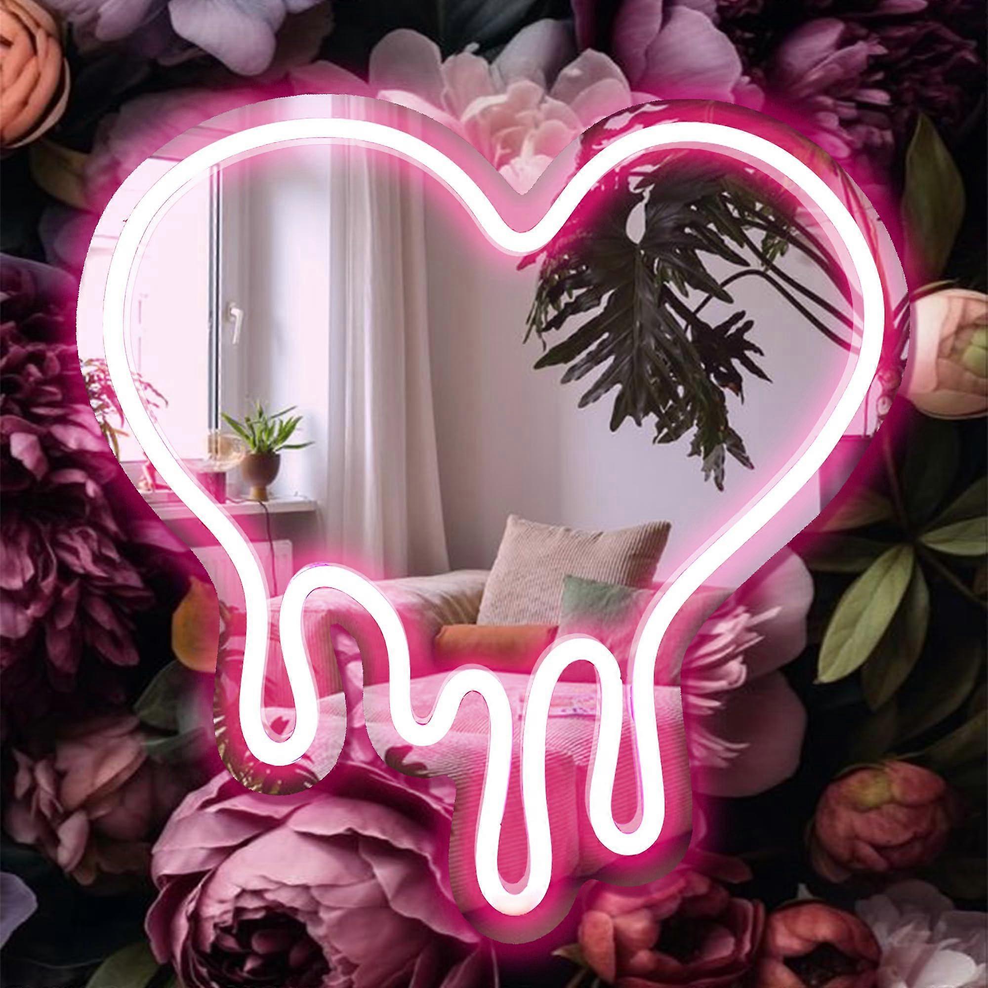 Heart Neon Sign - 12x12 Pink LED Light Wall Decor, USB Powered Heart Melting Decorative Mirror for Home Decor