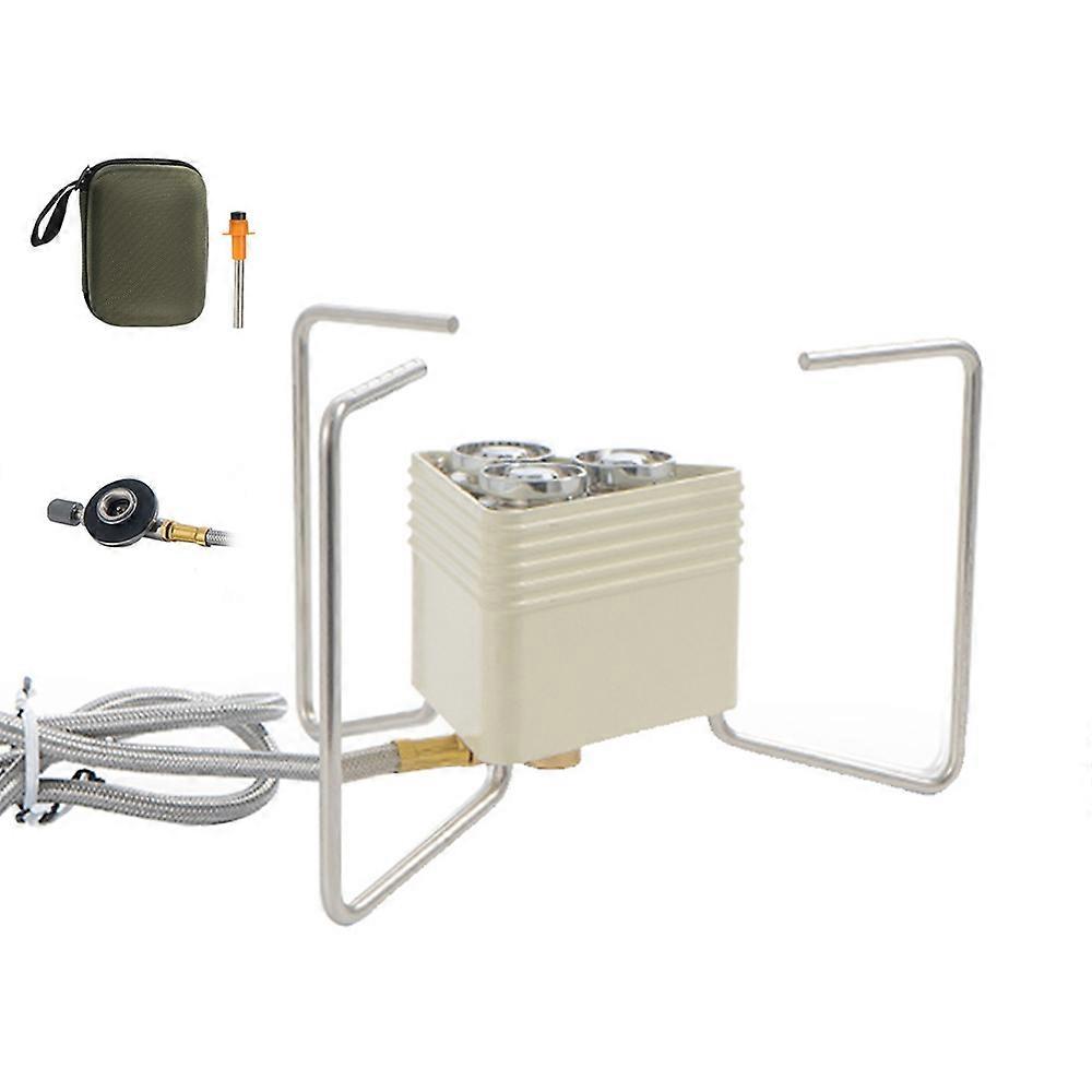 Outdoor Gas Stove 8000W Triple Burner Camping Stove Portable Windproof Cooking Stove Lightweight Cream White for Hiking Fishing Climbin