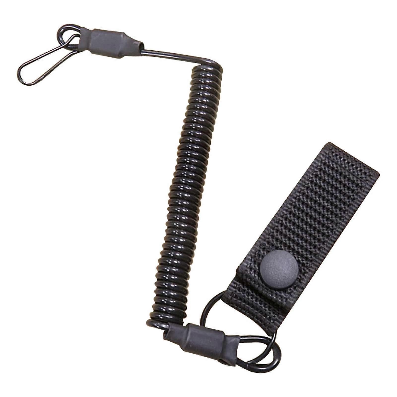 Tactical Lanyard Spiral Key Pendant Carabiner Black Elastic Fishing Lanyard Reusable For Fishing Hiking Mountaineering