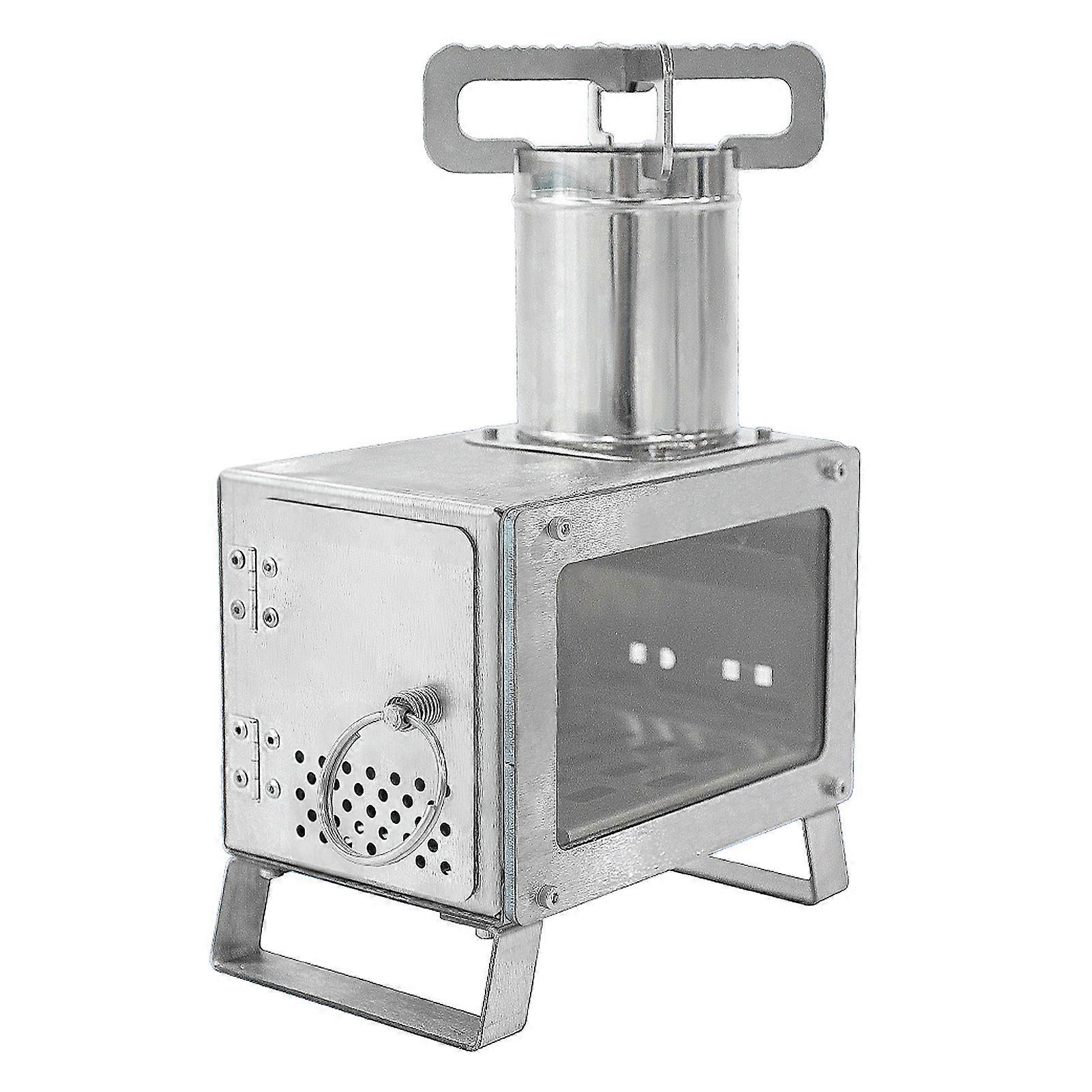 Portable Stainless Steel Wood Burning Stove Compact Campfire Heater Glass Window Outdoor Cooking Heating Small BBQ Gril