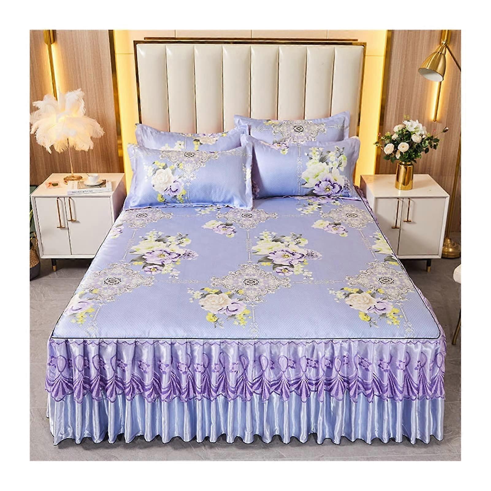 Ice Silk Lace Bedding Set with Bed Skirt and Pillowcases Queen King Super King 150x200cm 3pcs