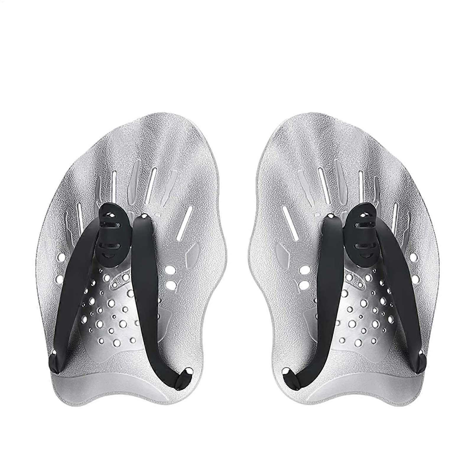 Swimming Hand Paddles with Adjustable Strap for Training, Practice, Adults, Teens, Silver Grey Pair