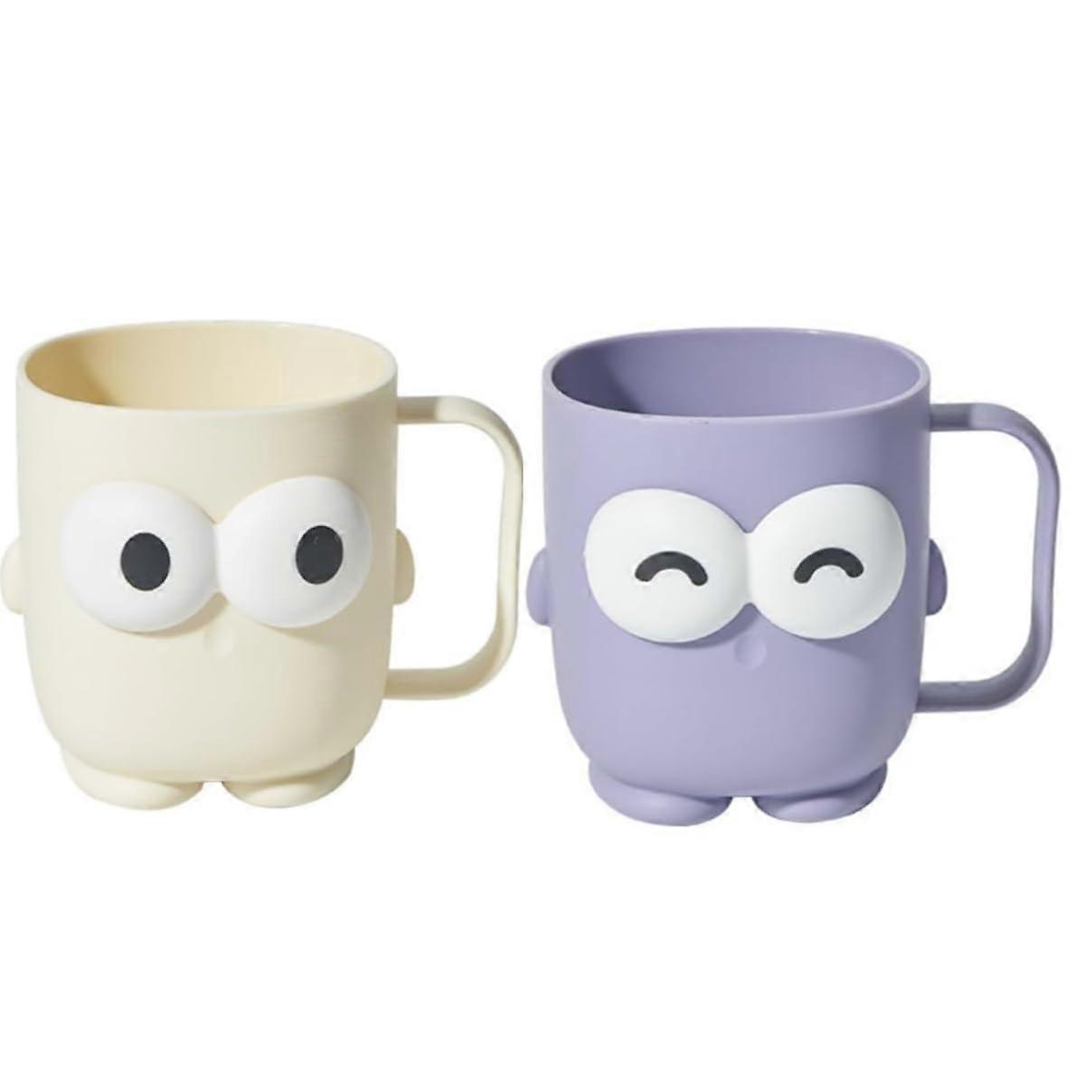 Children’s Toothbrush Cup Set of 2 with Handles, Cartoon Big Eyes Plastic Holder for Kids Home Travel Camping (Purple White)