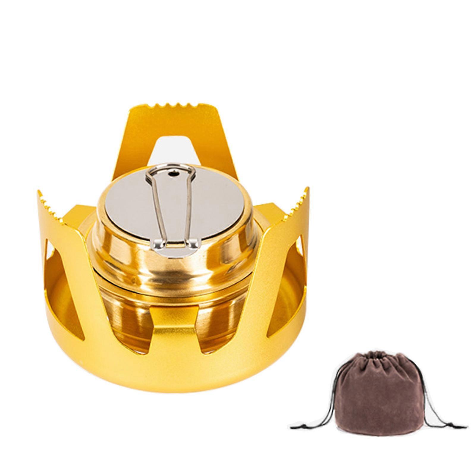 Portable Mini Alcohol Stove Compact Camping Burner with Aluminium Stand Outdoor Cooking Boiling Tea Equipment Gold Durable Lightweigh