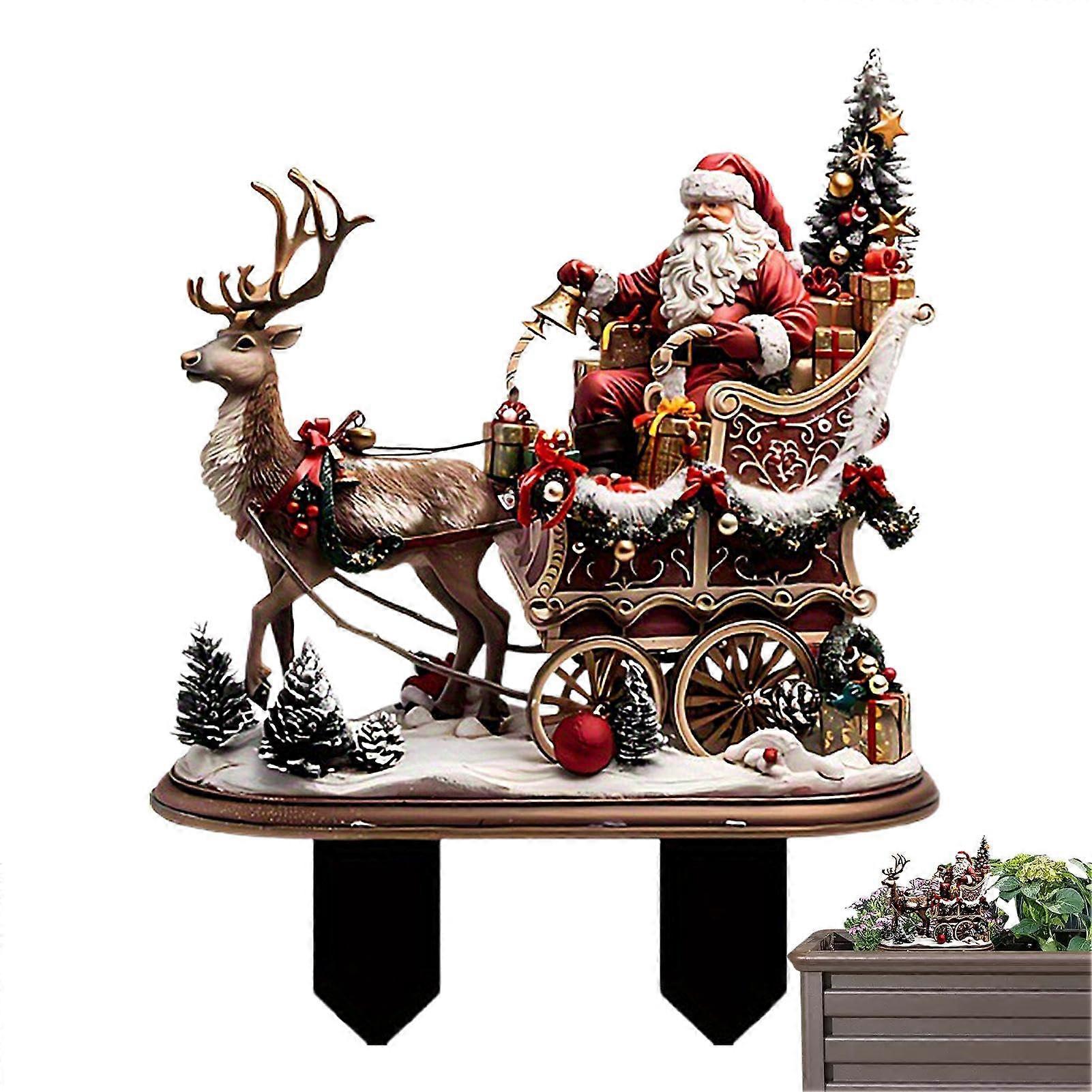 Weihnachtsmann-Gartenstecker für den Garten, 2D Cartoon Rentierpfähle, Dekorative Feiertags-Rasendekoration aus wetterfestem Material