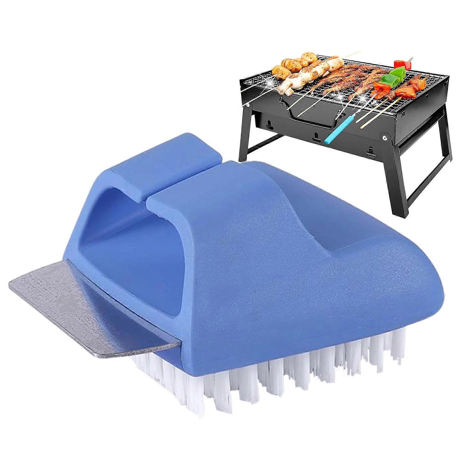 BBQ Brush for Grill Cleaning, 2-in-1 Stainless Steel Scraper, Compatible with Charcoal and Porcelain Grills, Blue