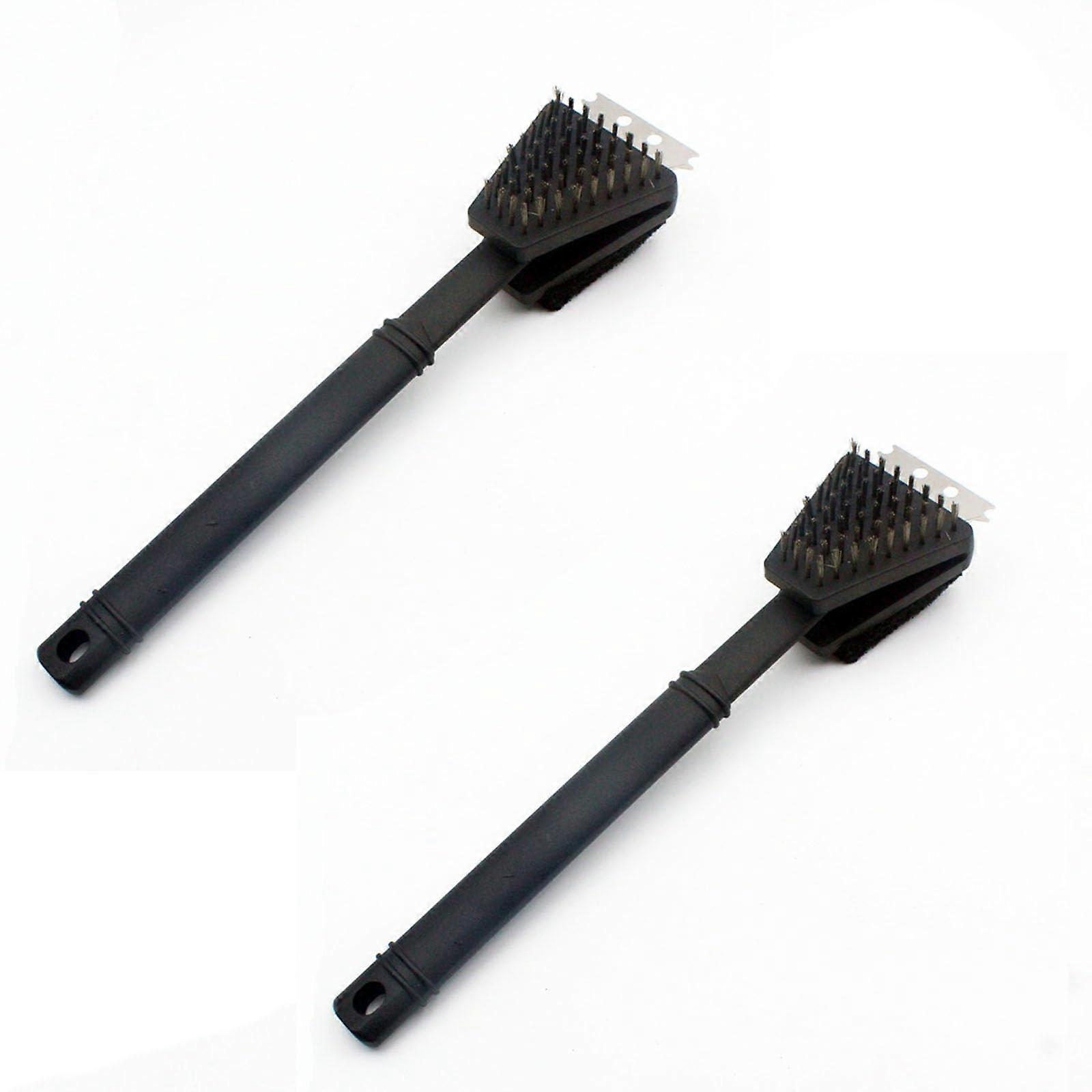 BBQ Cleaning Brush 3 in 1 Grill Cleaner with Steel Scraper Copper Wire Brush and Scouring Pad 14.5 Inch Long Handle 2 Pack