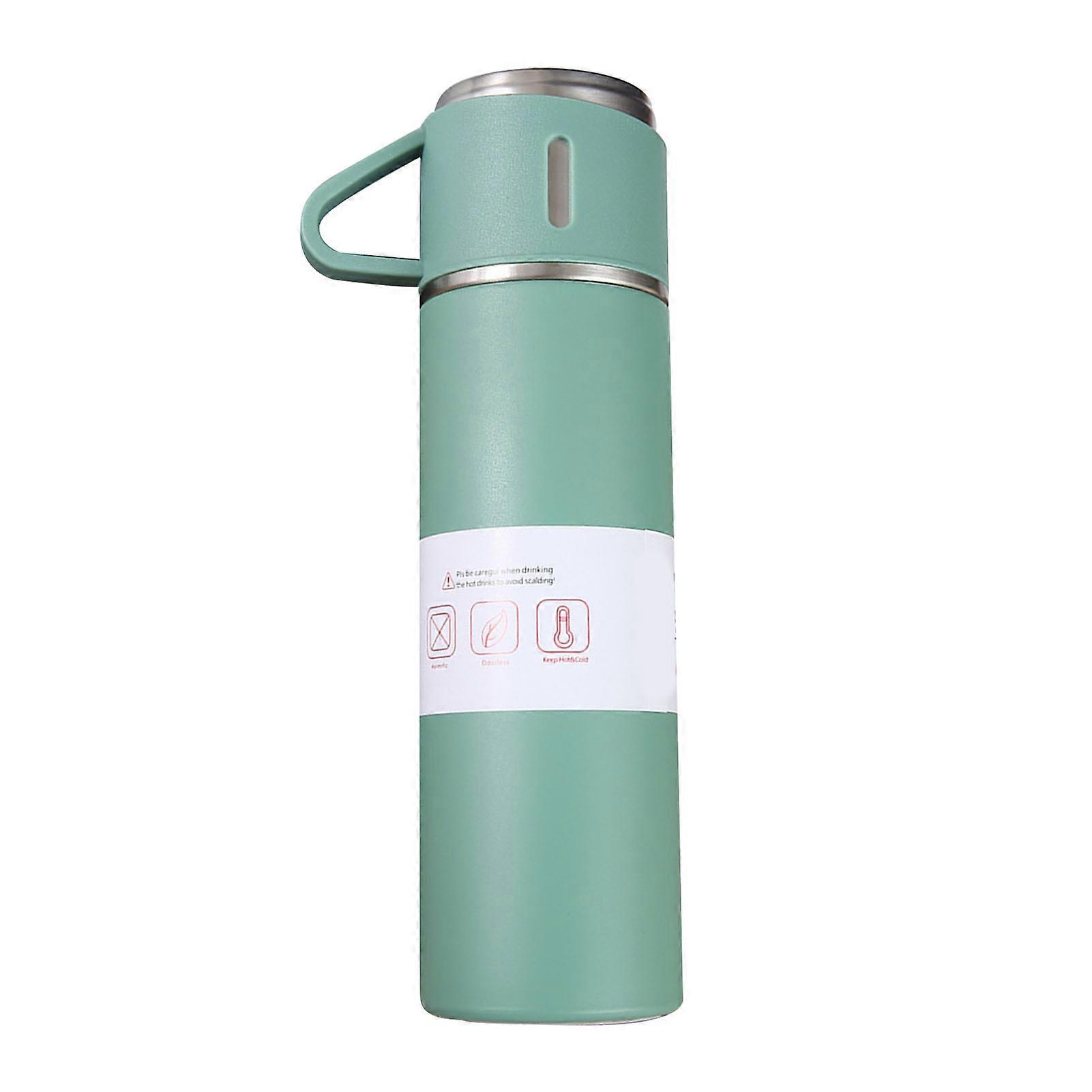 500ml Vacuum Insulated Flask Stainless Steel Bottle Portable Outdoor High-End Gift Set Straight Cup with Three Lids Green Editio