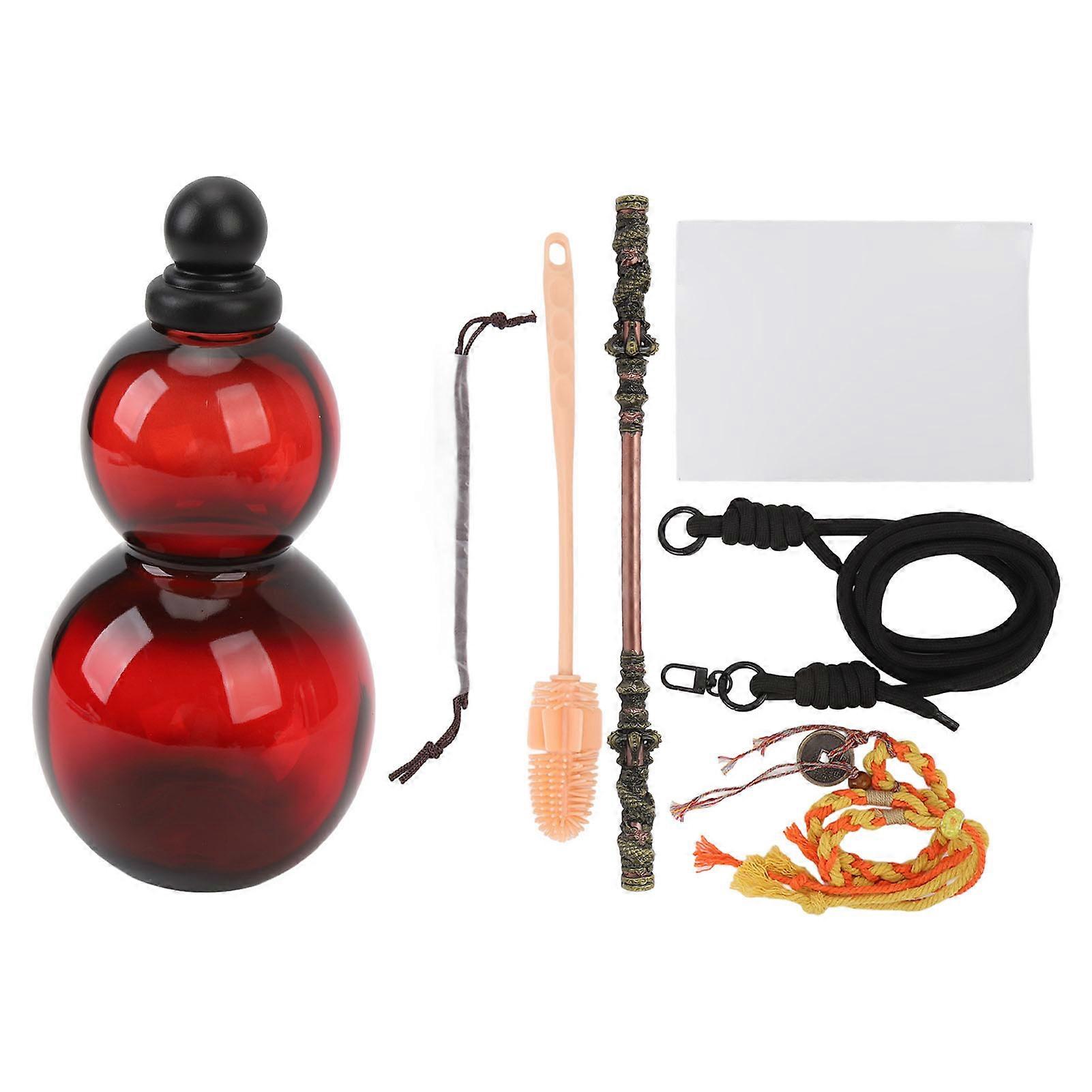 Creative Gourd Shaped Water Bottle Retro Style Red Double-Layer Design Durable Material Unique Gift Set with Cleaning Brush and Accessories for Outdoo