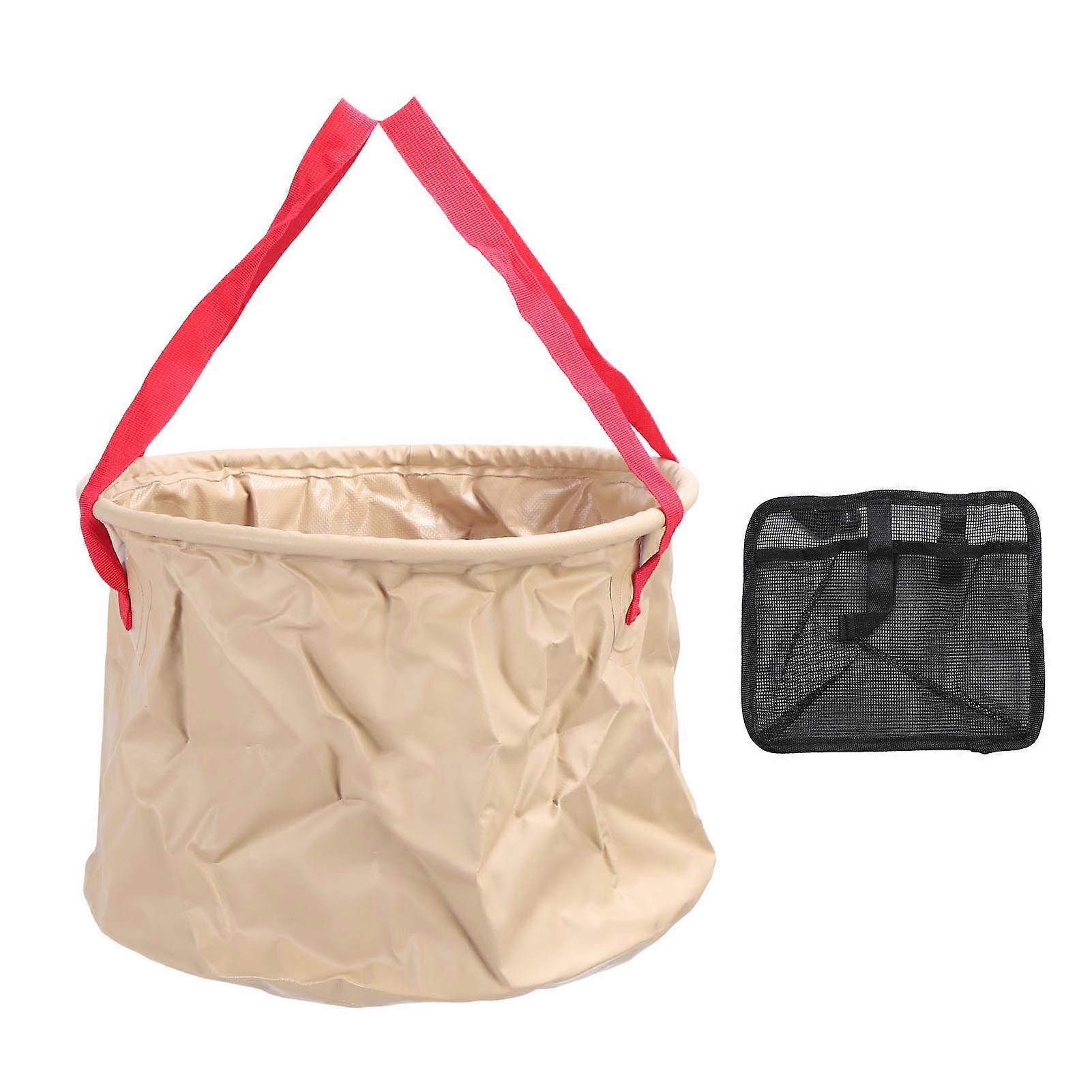 Portable Folding Water Bucket Camping Collapsible Beige Wash Basin Fishing Storage Container Durable Water-resistant Outdoor Us