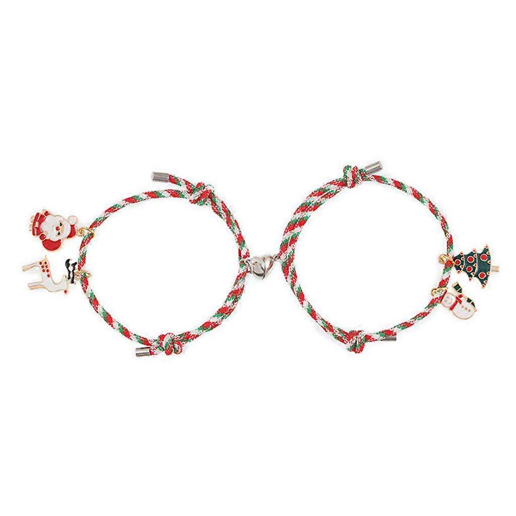 Xmas Heart Magnet Bracelet Christmas Tree Snowman Santa Claus Matching Love Stretch Bracelet Gifts for Women Friends
