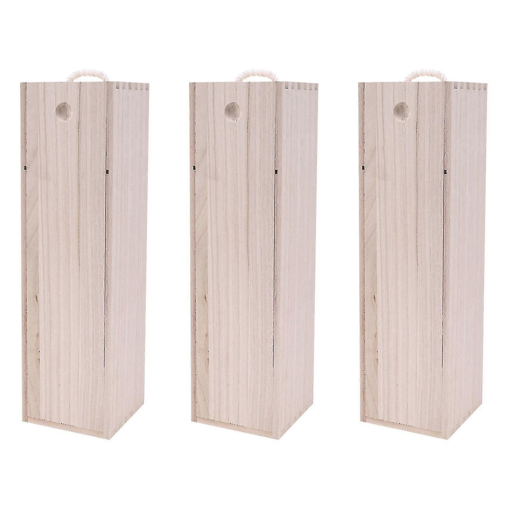 3 Bottle Wooden Wine Storage Box with Champagne Flute Holder, Gift Box for Wine Accessories