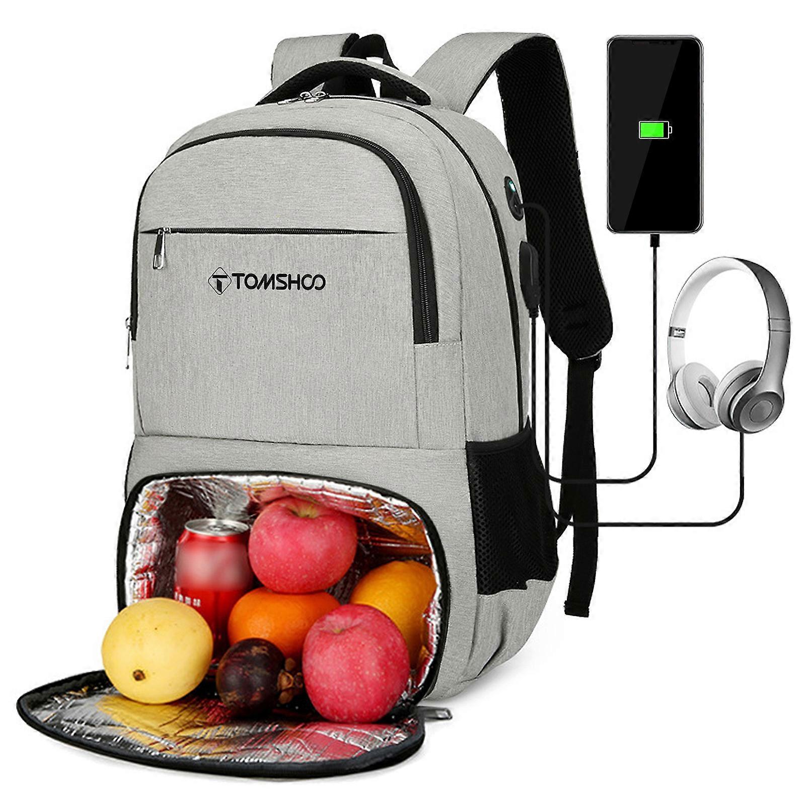 Insulated Backpack Cool Bag Leakproof Double-Layer Design USB Charging Port Adjustable Straps Durable Material for Picnic Outdoor Use Light Gre