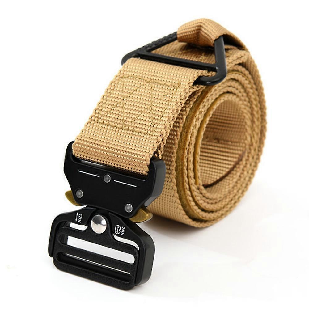 ZS08 125cm Men Tactical Belt Canvas Waistband with Gold Quick Release BuckleKhaki