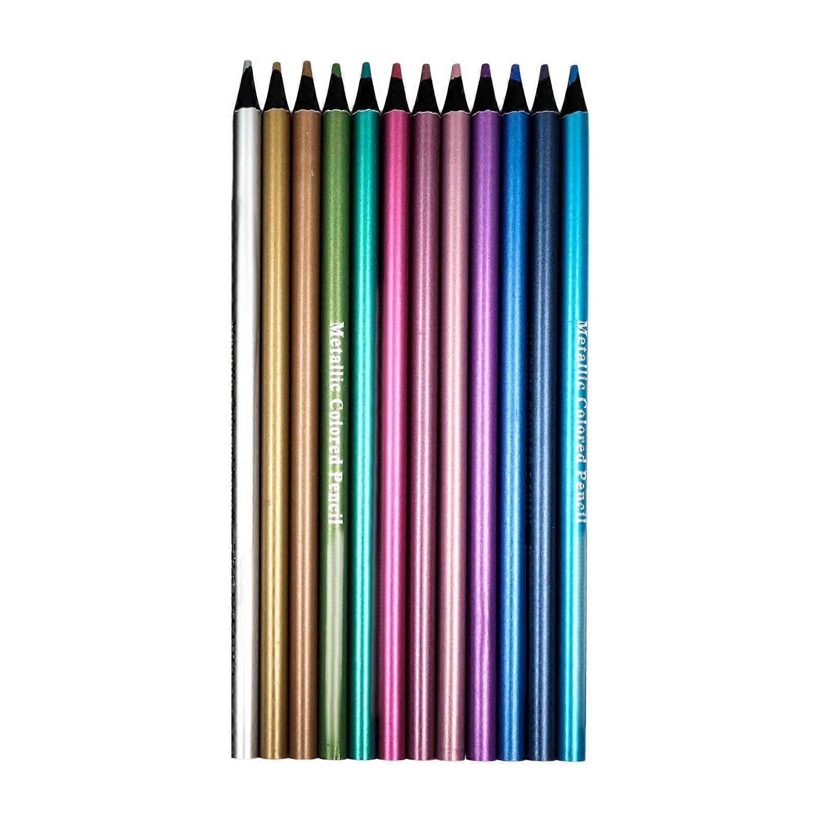 12 Colors Metallic Colored Pencils Set Drawing Writing Coloring for Gift