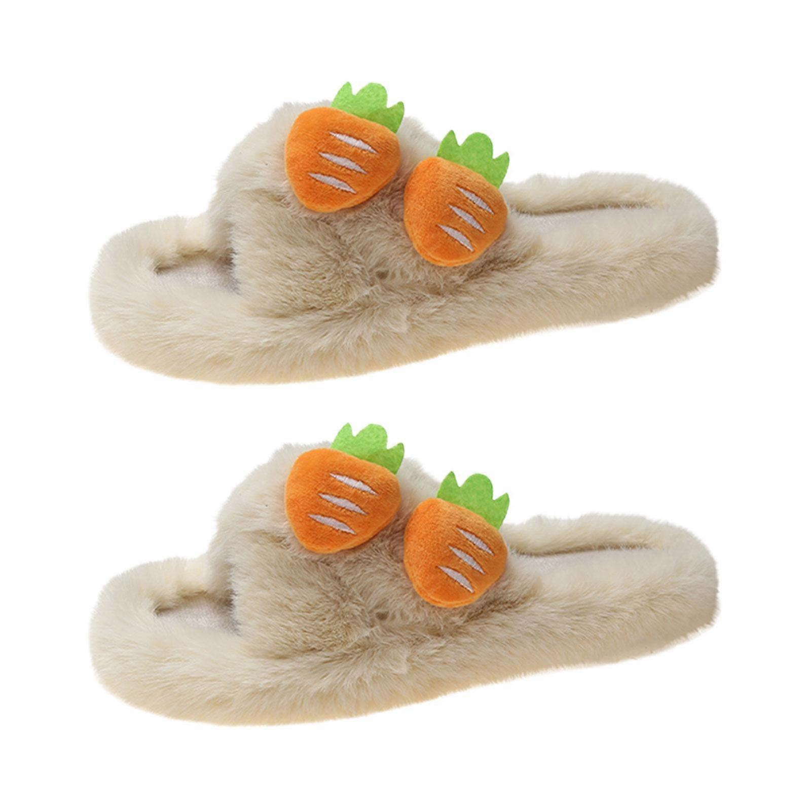 Women Furry Slippers Faux Fur Slippers Open Toe Indoor Outdoor with Rubber Sole