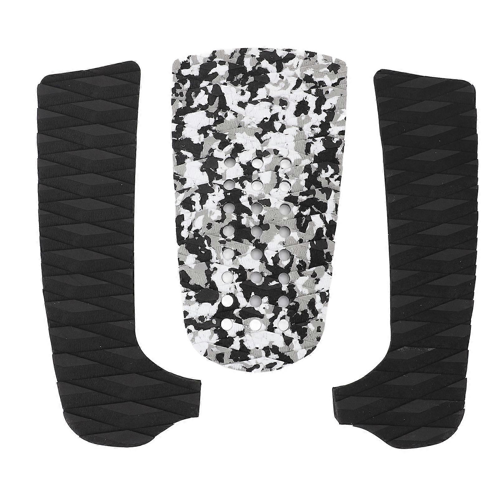 Three-Piece Anti-Slip Surfboard Front Traction Pad Non-Skid EVA Deck Grip for Snowboards Longboards Shortboards Durable Black and Gre