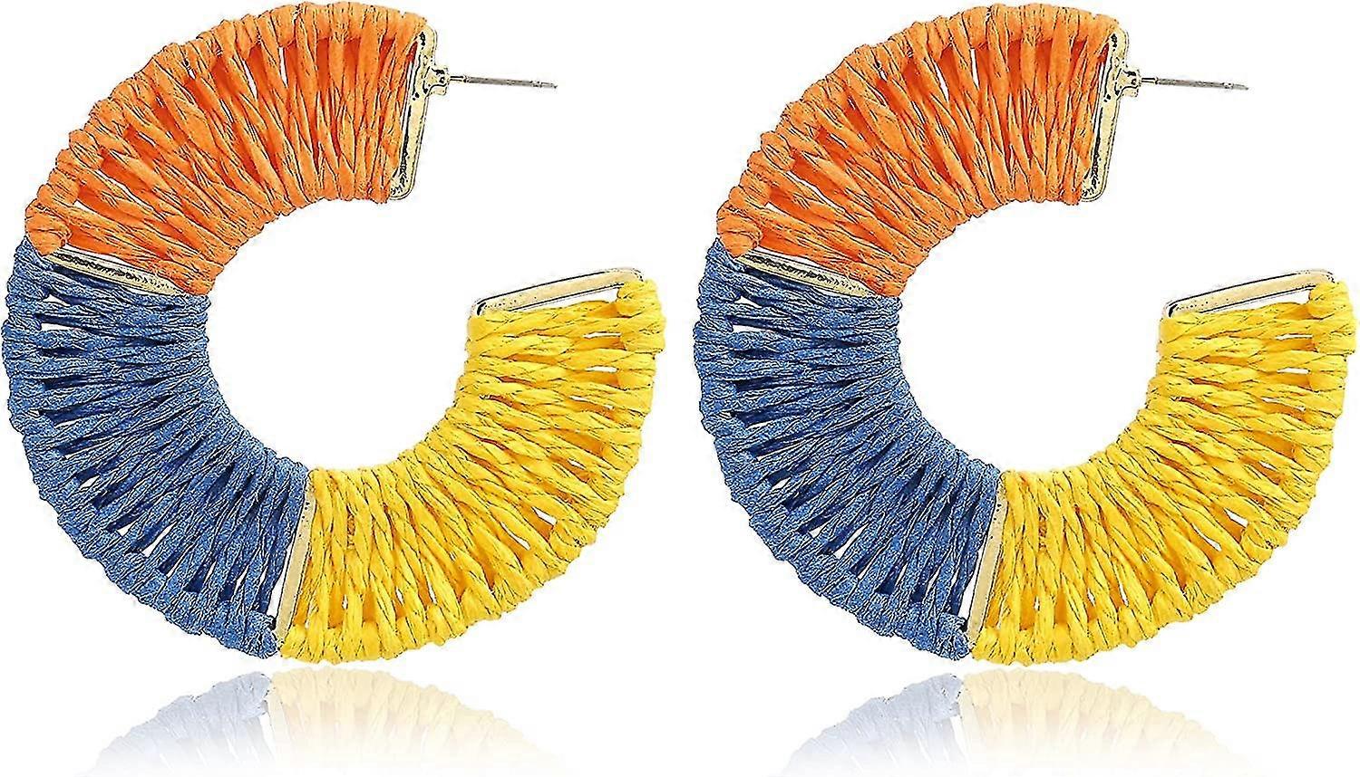 Colorful Raffia Hoop Earrings For Women Handmade Straw Beach Summer Fashion Boho Earrings CKS