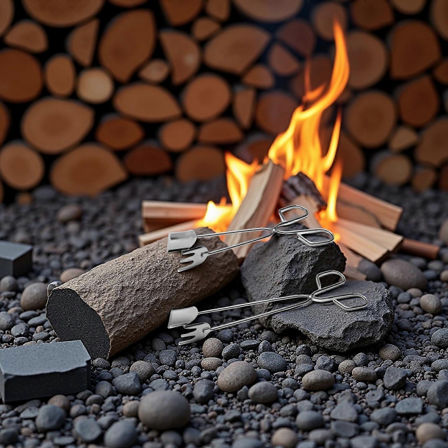 Charcoal clamp, outdoor barbecue charcoal clamp, extended fire tongs, household stove fire coal flat head charcoal clamp