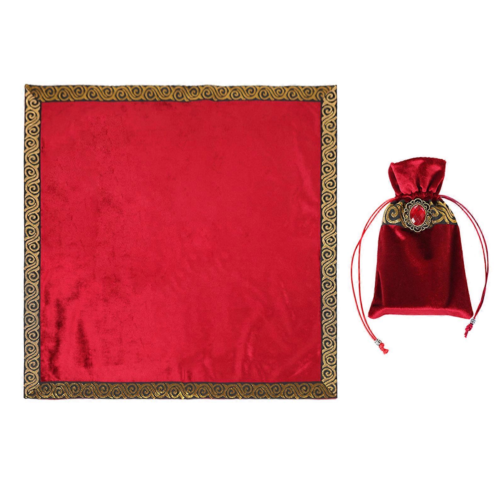 Velvet Tarot Table Cloth 66x66cm Red With Gold Border Thick Fabric Soft Surface Includes Philosopher's Stone Card Ba