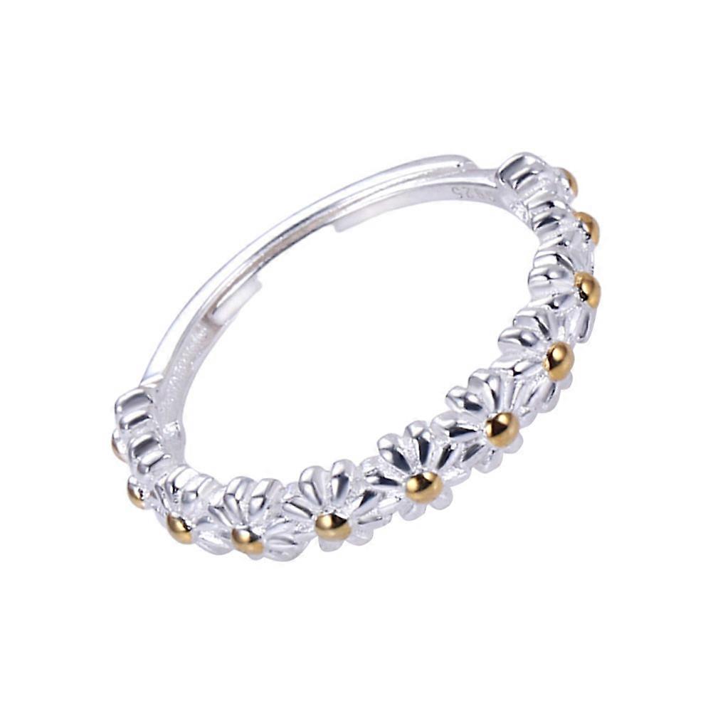 Adjustable Open Daisy Ring in Sterling Silver Elegant Floral Jewelry for Women and Men, Stylish Retro Fashion Accessory for Valentine's Day