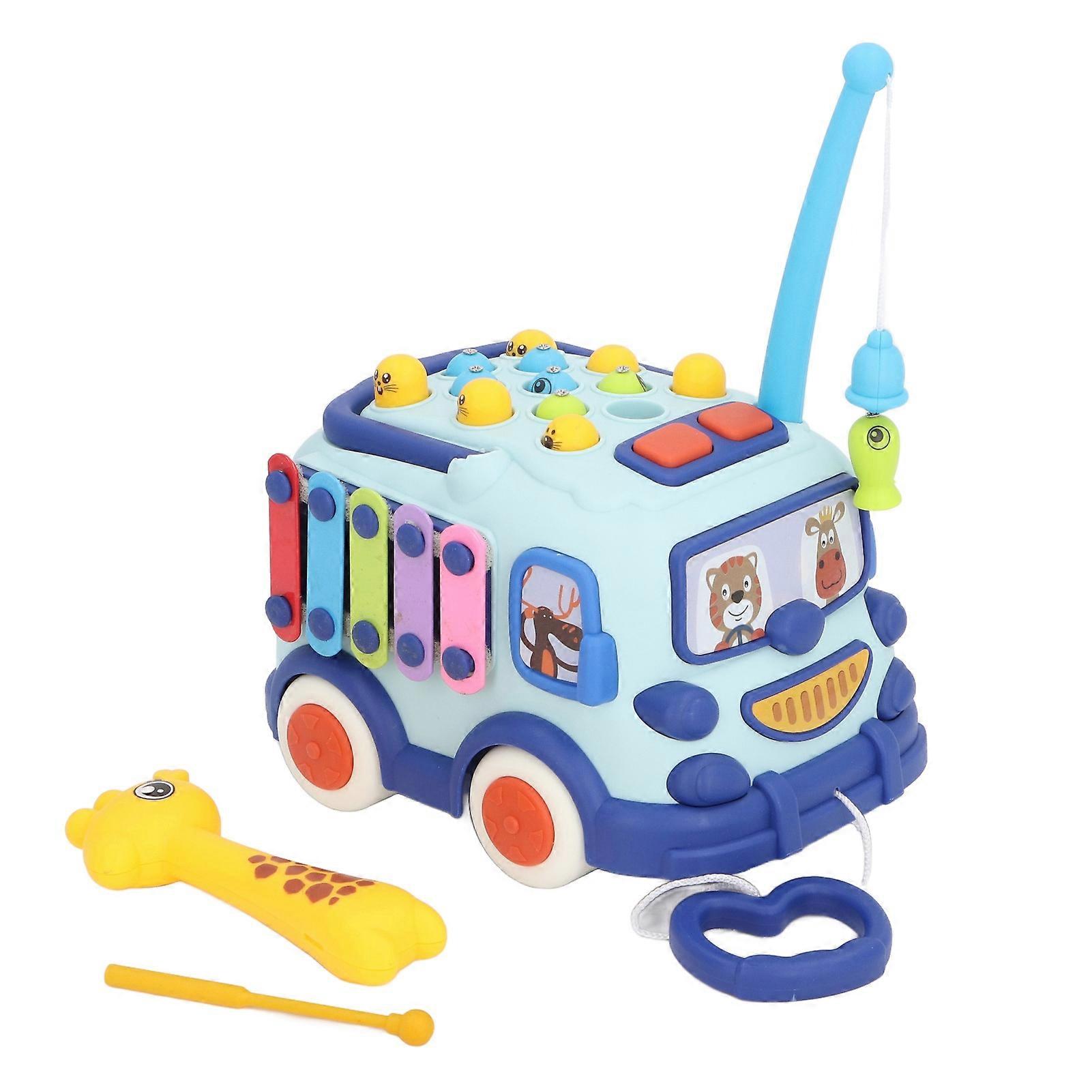 Multifunctional Educational Toy Bus Interactive Whack-a-Mole Fishing Xylophone Walking Aid for Toddlers Durable Plastic Blue Gift Packagin