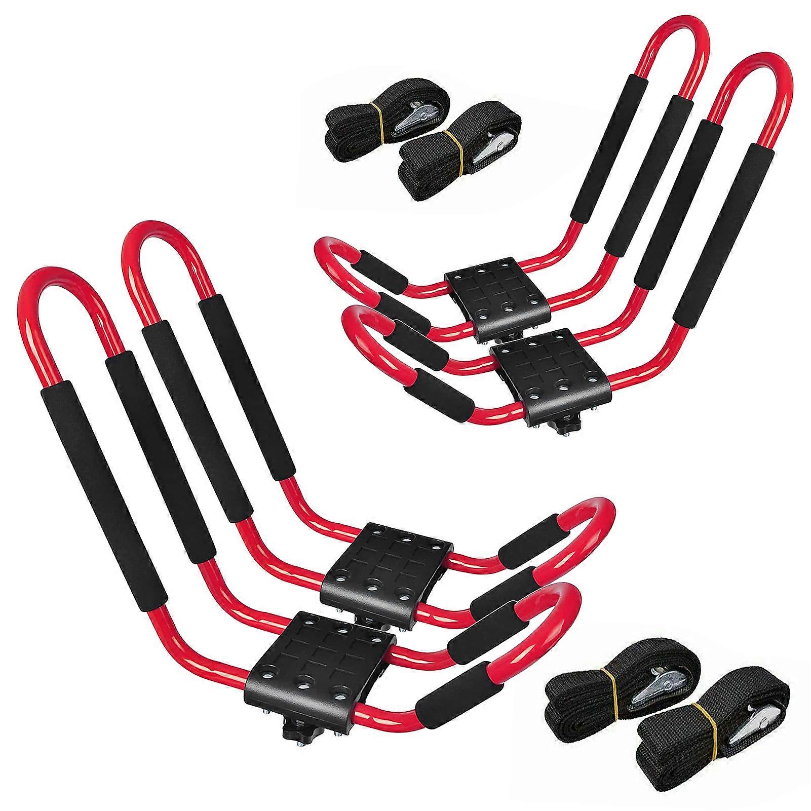 Kayak Roof Rack Car Top Carrier Universal Canoe Rack Foam-Padded Red Steel Durable Design 2 Pairs 4 Pieces for Easy Transpor