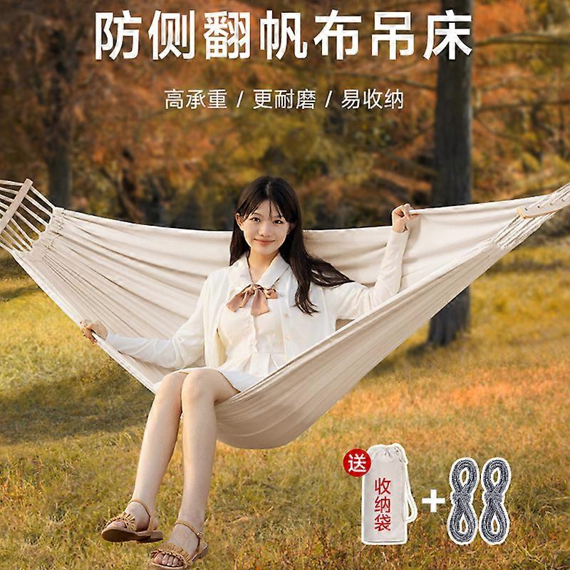 Outdoor Single Person Hammock Blue Stripe Design Durable Canvas Fabric Space-Saving Wooden Bar Breathable Comfortable 190x100cm Supports Up to 100kg I